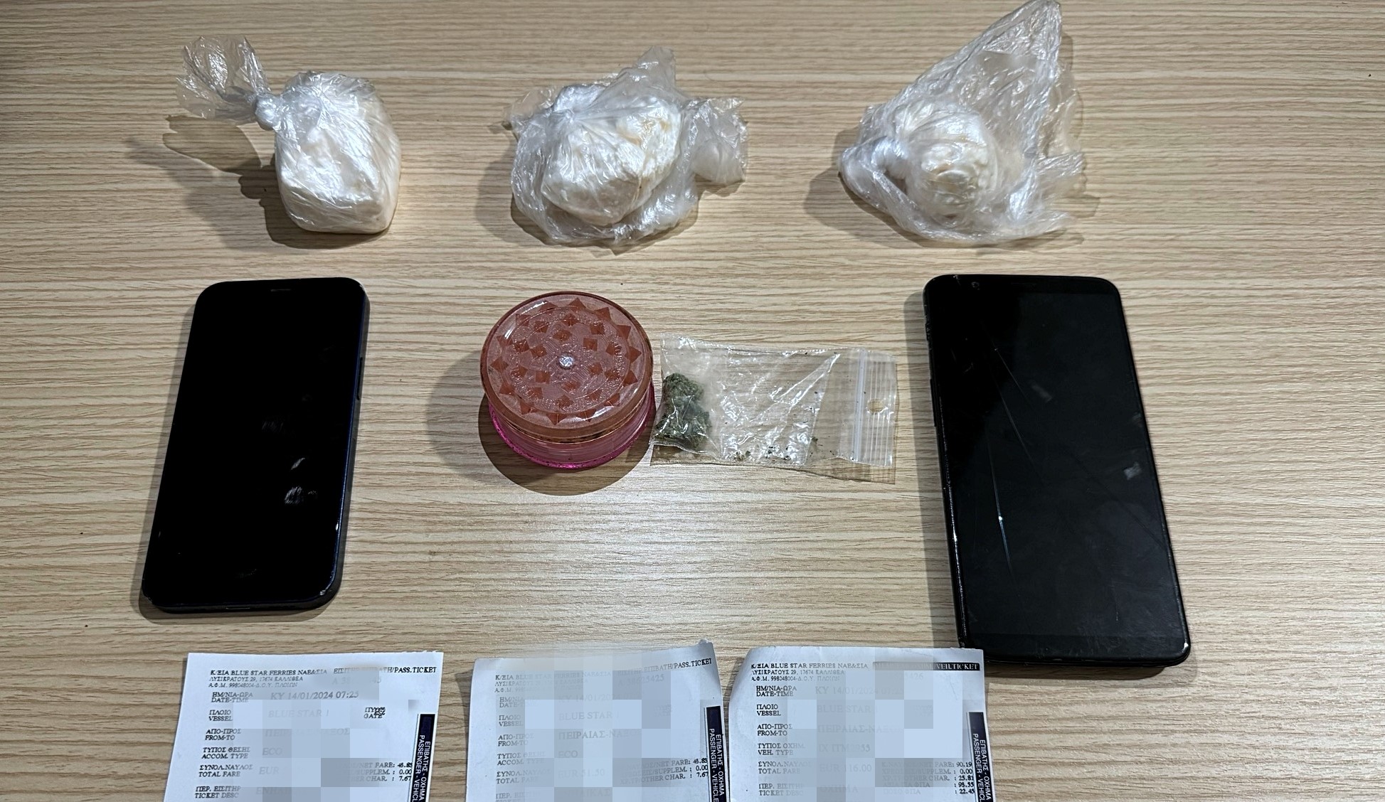 Όπως προέκυψε, η 21χρονη κατείχε τις ναρκωτικές ουσίες κρυμμένες σε προσωπικά της αντικείμενα για λογαριασμό του 26χρονου.