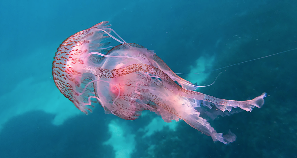 Μέδουσες με διάμετρο που μπορεί να φτάσει το ένα μέτρο εντοπίστηκαν στην Ρόδο, φανερώνοντας έτσι το αποτύπωμα της κλιματικής κρίσης. Το περιστατικό γνωστοποιήθηκε από το Ενυδρείο Ρόδου, με σχετική του ανάρτηση. Πρόκειται για το είδος «Rhopilema nomadica», γνωστή και ως νομαδική μέδουσα, η οποία έχει ημισφαιρικό σχήμα και διαφανές – γαλαζωπό χρώμα.