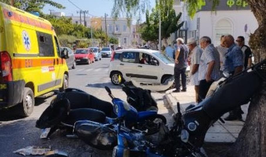 Ο οδηγός της μηχανής στην οποία έπεσε το όχημα μεταφέρθηκε στο Νοσοκομείο Σύρου, για παροχή πρώτων βοηθειών. Άγνωστη παραμένει μέχρι στιγμής η αιτία που έκανε τον οδηγό του ενοικιαζόμενου οχήματος να χάσει τον έλεγχο.