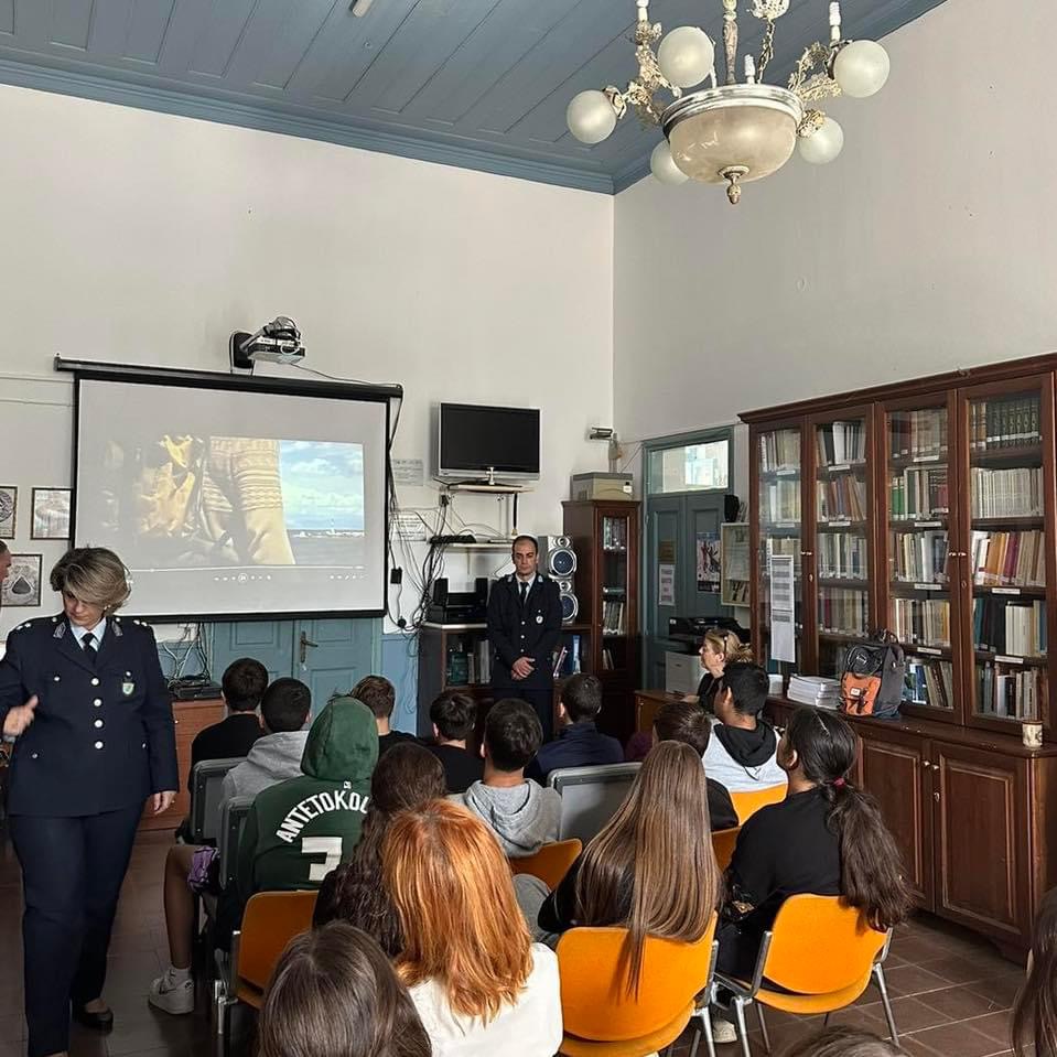 Στο πλαίσιο υλοποίησης στόχων που τέθηκαν από τη Γενική Περιφερειακή Αστυνομική Διεύθυνση Νοτίου κατά την έναρξη της σχολικής χρονιάς 2024-2025 και αφορούν, μεταξύ άλλων, την ευαισθητοποίηση της μαθητικής κοινότητας σε θέματα οδικής ασφάλειας, πρόληψης χρήσης εξαρτησιογόνων ουσιών, αντιμετώπισης σχολικού εκφοβισμού, προστασία από ενδοοικογενειακή βία, ασφαλή πλοήγηση στο διαδίκτυο αλλά και την εν γένει ενημέρωση των πολιτών, υλοποιούνται ενημερωτικές διαλέξεις.