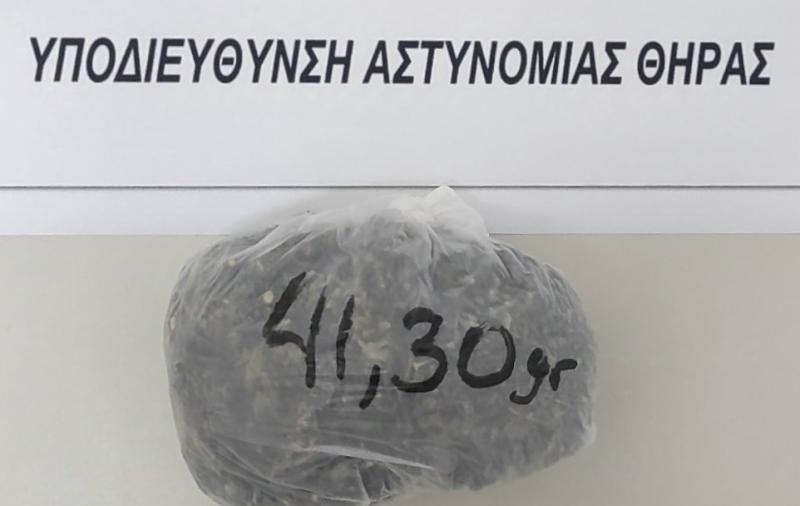 Χθες το απόγευμα συνελήφθη στη Θήρα, από αστυνομικούς της Υποδιεύθυνσης Αστυνομίας Θήρας, 18χρονος αλλοδαπός στην κατοχή του οποίου βρέθηκαν και κατασχέθηκαν -41,3- γραμμ. ακατέργαστης κάνναβης.