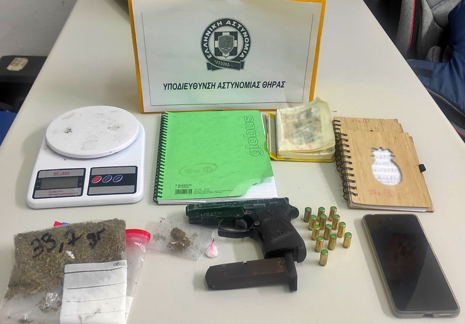 Συνελήφθη τη Τετάρτη 26 Φεβρουαρίου 2025 στη Θήρα, από αστυνομικούς της Ομάδας Πρόληψης Καταστολής Εγκληματικότητας και της Υποδιεύθυνσης Αστυνομίας Θήρας, ένας 25χρονος αλλοδαπός σε βάρος του οποίου σχηματίσθηκε ποινική δικογραφία για διακίνηση ναρκωτικών ουσιών, οπλοκατοχή, παράβαση του Κ.Ο.Κ. και παράνομη διαμονή στη χώρα.