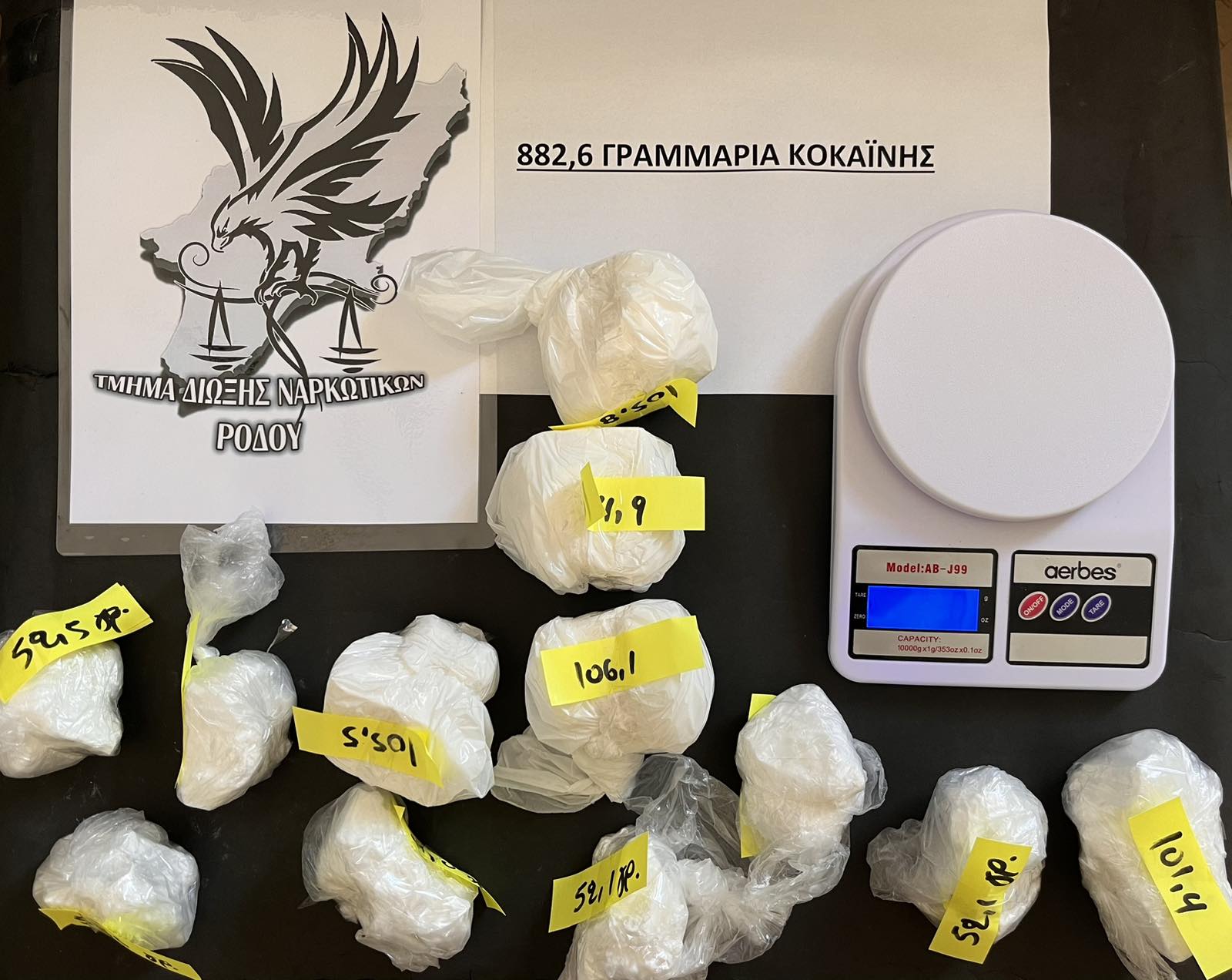 • -12- συσκευασίες κοκαΐνης συνολικού βάρους -882,6- γραμμαρίων, έτοιμες προς διακίνηση
