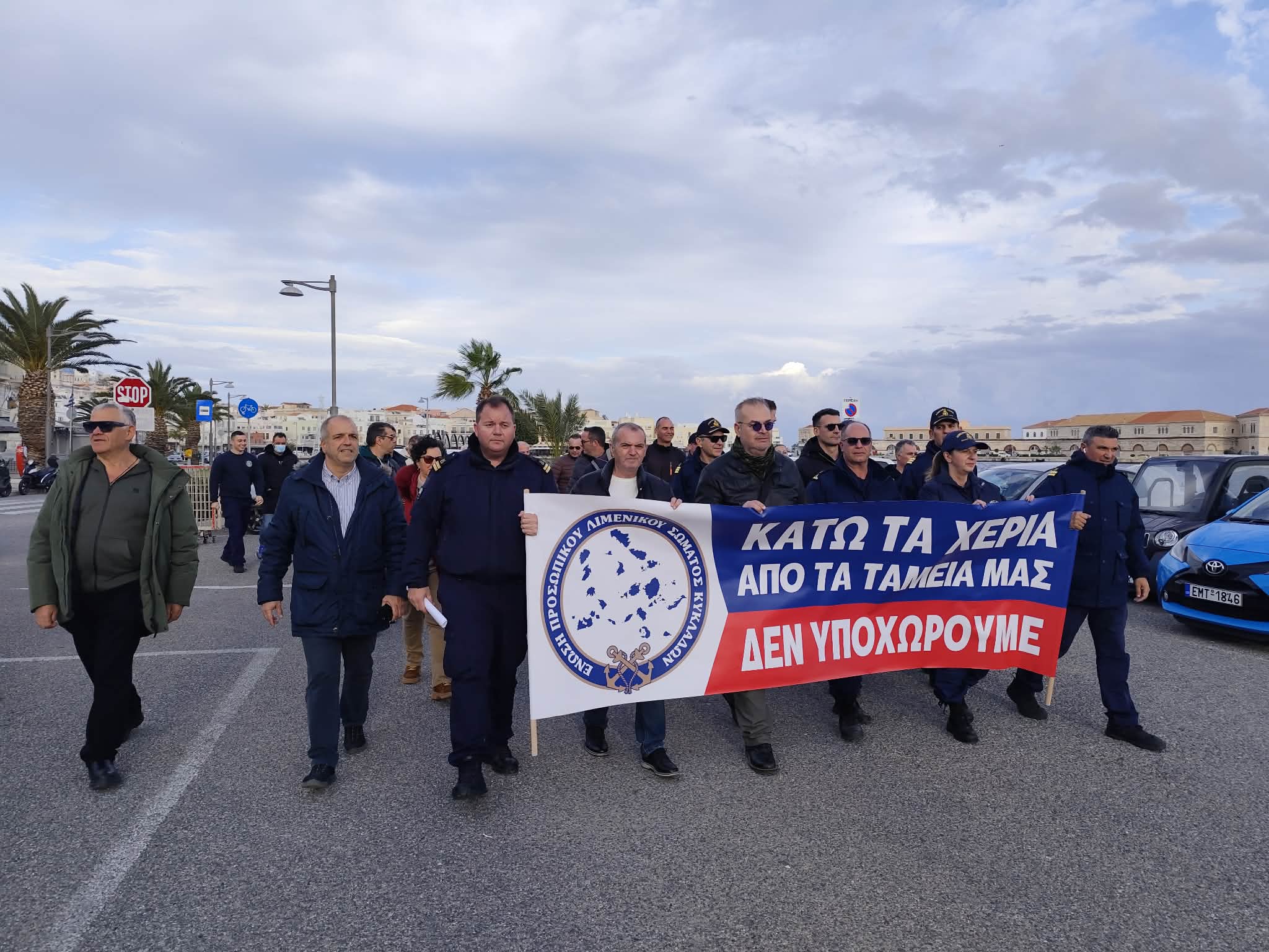 Συγκεκριμένα, στις 15.30 συγκεντρώθηκαν έξω από το Λιμεναρχείο Σύρου, διαβάζοντας σχετικό ψήφισμα και στη συνέχεια πραγματοποίησαν πορεία προς το λιμάνι της Ερμούπολης.