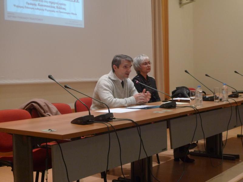 Η υπεύθυνη της Σχολής κ. Αναστασία Μπαξεβάνη παρουσίασε τον ομιλητή κ. Κωνσταντίνο Κόλλια, Ψυχίατρο-Επίκουρο Καθηγητή του Πανεπιστημίου Αθηνών, ο οποίος ανέλυσε το θέμα “Η οικογένεια στη σημερινή κρίση”.