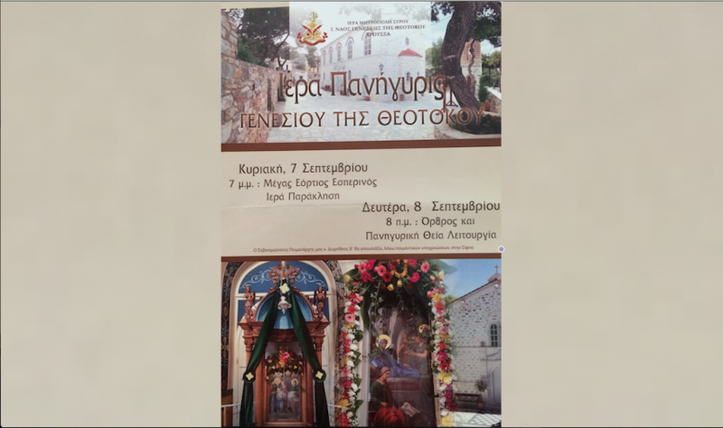 Το ιερό πανηγύρι Γενεσίου της Θεοτόκου θα πραγματοποιηθεί και φέτος την Κυριακή και τη Δευτέρα στον Ιερό Ναό της Θεοτόκου Γενέσεως στα Χρούσσα.