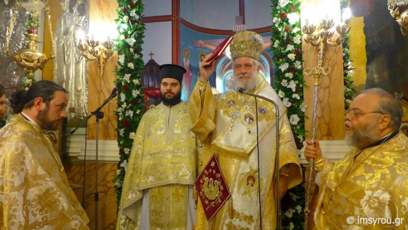 Στον ναό παρευρέθηκαν, μεταξύ άλλων, ο Δήμαρχος Σύρου - Ερμούπολης Γιώργος Μαραγκός,μέλη της δημοτικής αρχής, ο Υποδιοικητής του Τάγματος Εθνοφυλακής Ερμουπόλεως, ο Διευθυντής Δευτεροβάθμιας Εκπαίδευσης Κυκλάδων, Εκπαιδευτικοί, Μαθητές των Κατηχητικών Σχολείων και συνεργάτες του ποιμαντικού έργου της Ενορίας, οι οποίοι με κάθε τρόπο εξεδήλωσαν τον ενθουσιασμό τους.
