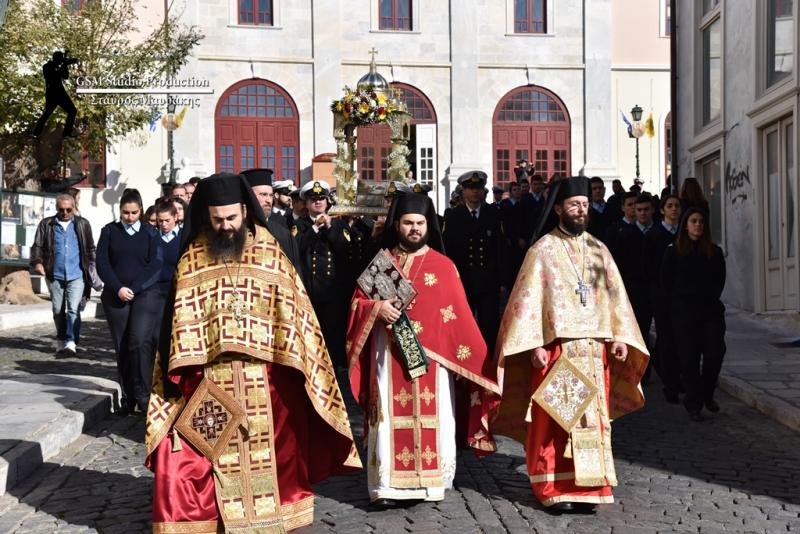 Κατόπιν της πανηγυρικής Θείας Λειτουργίας, χοροστατούντος του Σεβασμιωτάτου, κ.κ. Δωρόθεου, με τη συνοδεία της χορωδίας του Ι.Ν. Αγίου Νικολάου, ακολούθησε η λιτάνευση της εικόνας του πολιούχου του νησιού, στο ρυθμό που έδωσε η Φιλαρμονική του Δήμου Σύρου - Ερμούπολης, καθώς και κατάθεση στεφάνων, τόσο στο μνημείο του Ναυάρχου Μιαούλη, όσο και στο λιμάνι της πόλης, όπου τα στέφανα ερρίφθησαν στη θάλασσα, προς τιμήν των πεσόντων Ελλήνων ναυτικών, από τον Μητροπολίτη Σύρου, αλλά και τους επίτιμους παρεβρισκομένους, κ.κ. Βασίλη Λεβέντη, πρόεδρο της Ένωσης Κεντρώων, αλλά και Γιάννη Βρούτση, κοινοβουλευτικό εκπρόσωπο της Νέας Δημοκρατίας.
