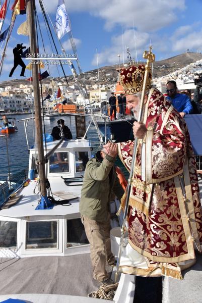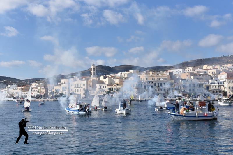 Με αισθητή την απουσία του καθιερωμένου, πλέον, χαιρετισμού, του Blue Star Paros, το οποίο κάθε χρόνο έδινε το δικό του, ξεχωριστό τόνο στους εορτασμούς, με μανούβρες και σφυρίγματα στο λιμάνι και που φέτος παρέμεινε δεμένο στο λιμάνι του Πειραιά, λόγω της απεργίας της ΠΝΟ, τα αλιευτικά πλοιάρια, τα πλοιάρια του Ν.Ο.Σ., καθώς και σκάφη του Πολεμικού Ναυτικού, έδωσαν χρώμα και φωνή στη θάλασσα, με βεγγαλικά, αλλά και σφυρίγματα, κάνοντας για ακόμη μία χρονιά φαντασμαγορική την κορύφωση των εορτασμών, προς τιμή του πολιούχου της Σύρου και προστάτη των ναυτικών, Αγ. Νικολάου.