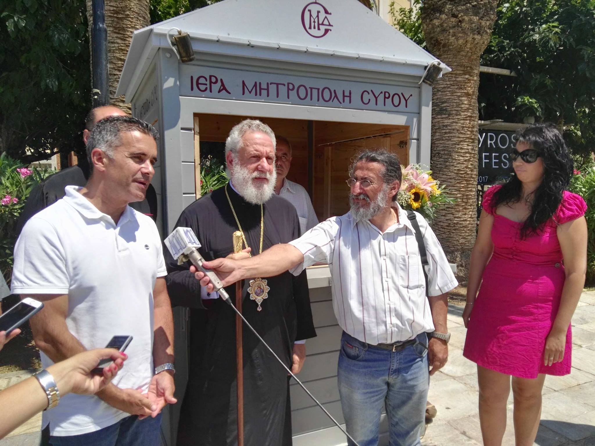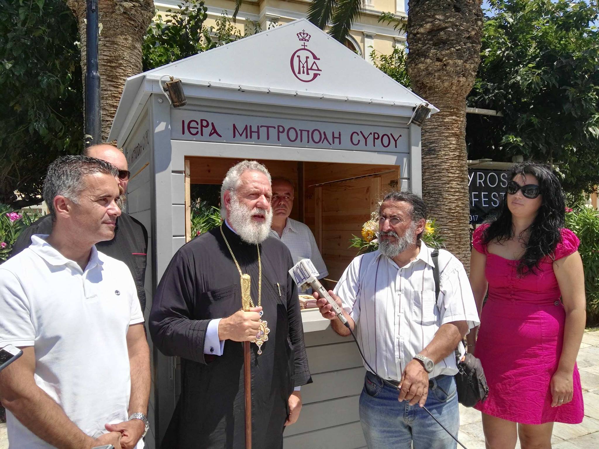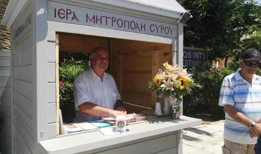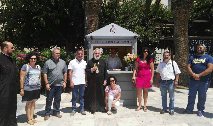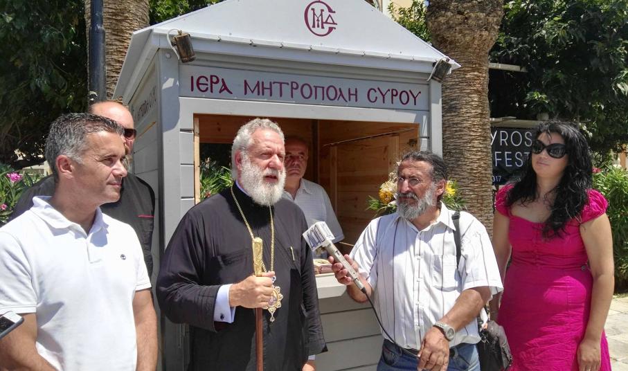 Τη λειτουργία του εκκλησιαστικού περιπτέρου της Ιεράς Μητρόπολης Σύρου στην ιστορική πλατεία Μιαούλη εγκαινίασε σήμερα ο Σεβασμιώτατος Μητροπολίτης Σύρου κ. Δωρόθεος Β΄, μέσω του οποίου θα παρέχεται πολύτιμη πληροφόρηση και έντυπο υλικό για το ποιμαντικό έργο της Ορθόδοξης Εκκλησίας στο νησί.