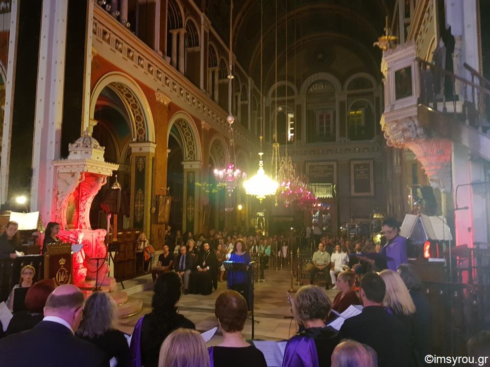Το θρησκευτικό Δρώμενο-Ορατόριο "Ο Όσιος Σάββας ο Ηγιασμένος", έργο της Μαέστρου Γιάννας Ακριβοπούλου απήλαυσαν στον Ιερό Ναό του Αγίου Νικολάου Ερμούπολης οι φιλόμουσοι Συριανοί, μεταξύ των οποίων ο Αντιδήμαρχος Σύρου-Ερμούπολης κ. Κοσμάς και εκπρόσωποι του Στρατού, της Αστυνομίας και του Λιμενικού Σώματος.