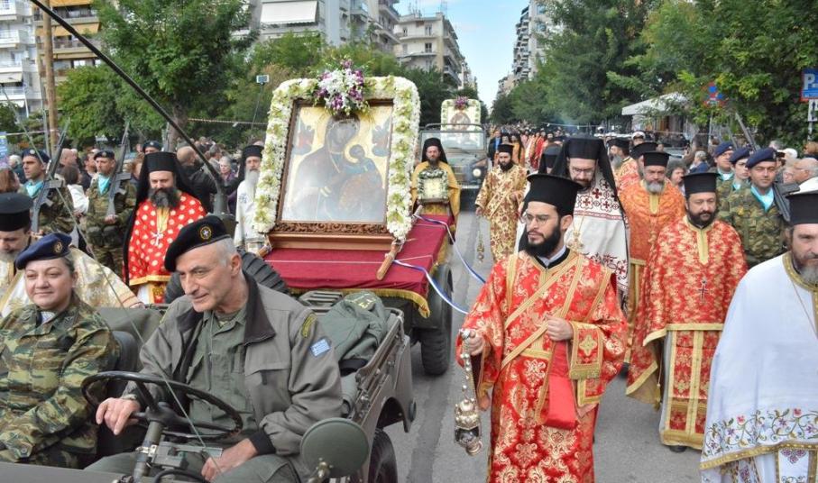 Με τη συμμετοχή πλειάδος Αρχιερέων, Ιερέων και Διακόνων, προεξάρχοντος του Σεβασμιωτάτου Μητροπολίτου Θεσσαλονίκης κ. Ανθίμου, πραγματοποιήθηκε σήμερα το πρωί. στην ηλιόλουστη πόλη της Θεσσαλονίκης, πάνδημη λιτάνευση, φερομένων επί κιλλίβαντος, των ιερών εικόνων της Παναγίας "Κανάλας" και του Αγίου Δημητρίου και των τιμίων Λειψάνων του, πλαισιουμένη από τις Φιλαρμονικές του Στρατού της Αστυνομίας και του Δήμου, με την παρουσία της Υφυπουργού Μακεδονίας-Θράκης κας Κόλλια-Τσαρουχά, εκπροσώπων του Δήμου, του Στρατού και των Σωμάτων Ασφαλείαςκαι πλήθους πιστών οι οποίοι παρηκολούθησαν μετ' ευλαβείας την πόλη ευλογουμένη από τα σεβάσματα αυτά της πίστεώς μας.
