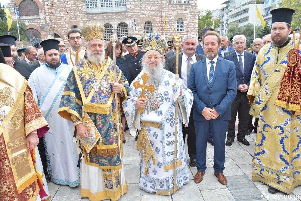 Μετά την επιστροφή της Λιτανείας, ο Σεβασμιώτατος Μητροπολίτης Θεσσαλονίκης κ. Άνθιμος ευχήθηκε σε όλους να έχουν υγεία και τους κάλεσε σε εθνική και θρησκευτική ενότητα, γιατί, όπως είπε, μόνο έτσι μπορούμε να αντιμετωπίσουμε τις δυσκολίες.