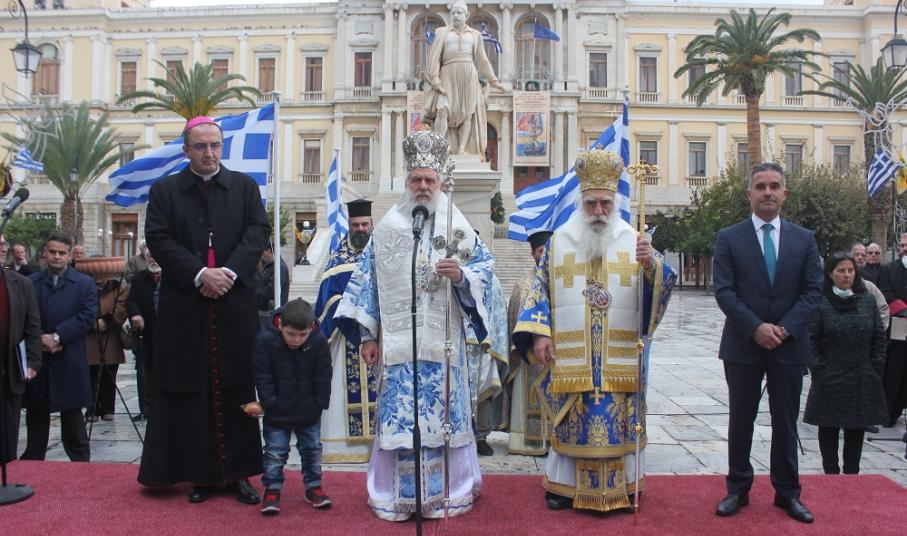 Με την ευχή ο Άγιος Νικόλαος να σκεπάζει τη Σύρο, να ταξιδεύει με τους ναυτικούς μας, να φέρνει πάντα χαρούμενα μηνύματα από τις θάλασσες και να βοηθήσει την πατρίδα μας να βρει το λιμάνι της προκοπής, της ησυχίας και της ευημερίας, ο ευσεβής λαός του νησιού εόρτασε με τη δέουσα λαμπρότητα και ευλάβεια τη μνήμη του Πολιούχου του.