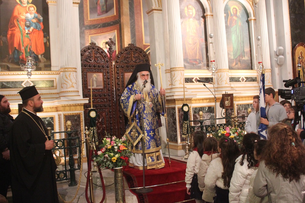 Ο Σεβασμιώτατος κ. Δωρόθεος Β’ ευχαρίστησε για την παρουσία του τον πολυτίμητο, όπως είπε, αδελφό, Σεβασμιώτατο Μητροπολίτη Νέας Σμύρνης κ. Συμεών, αναφέροντας χαρακτηριστικά «τον καλωσορίζουμε από μία Μητρόπολη του Λεκανοπεδίου, η οποία φέρει το όνομα της μαρτυρικής Σμύρνης, τη Μητρόπολη Νέας Σμύρνης, το λαό της οποίας διαποιμαίνει λόγοις, έργοις, συγγράμμασι και διδασκαλίαις, με εκκλησιαστικό ήθος και φρόνημα και φόβο Θεού, με το δωρικό, αλλά πάντοτε ευγενές ύφος του, η πάντοτε διδακτική παρουσία του οποίου κατακοσμεί την Εκκλησία και την Ιεραρχία».