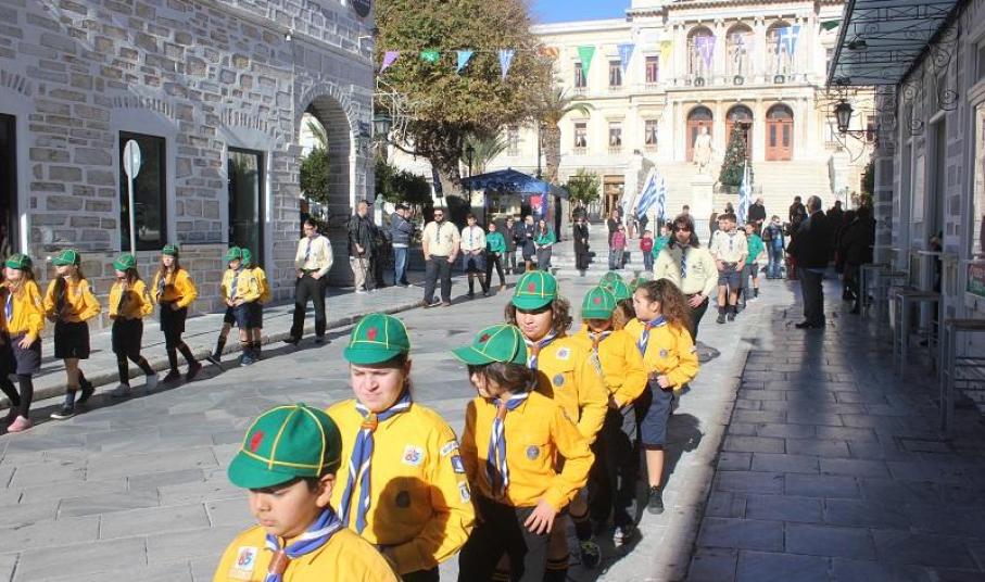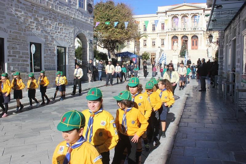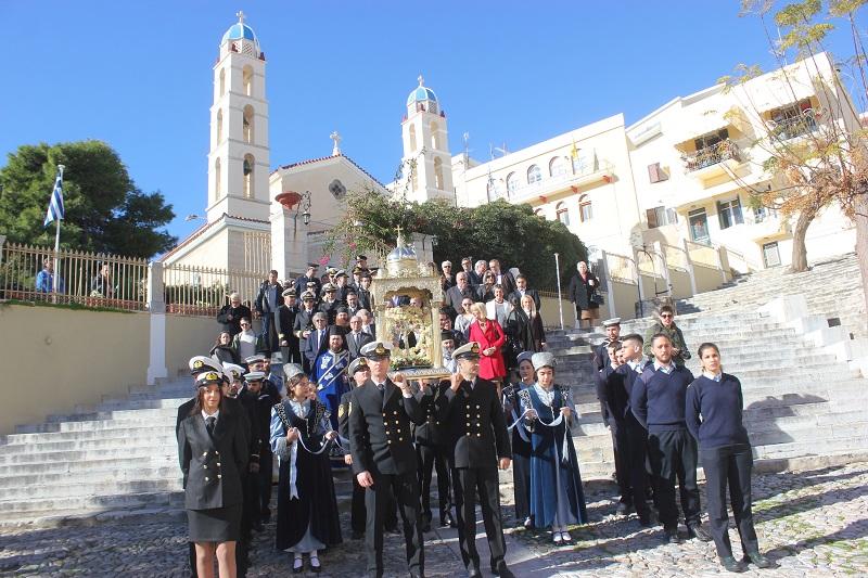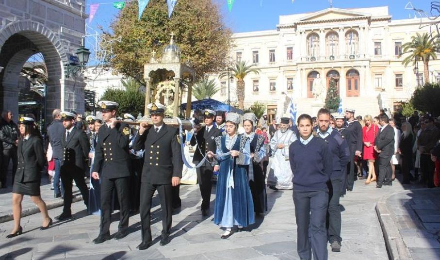 Το «παρών» έδωσαν ο Περιφερειάρχης Νοτίου Αιγαίου, Γιώργος Χατζημάρκος, ο Δήμαρχος Σύρου – Ερμούπολης, ο Χωρικός Αντιπεριφερειάρχης Κυκλάδων, μέλη της τοπικής αυτοδιοίκησης, εκπρόσωποι των σωμάτων ασφαλείας και του στρατού, και του Λιμενικού Σώματος, Δικαστικοί και Εκπαιδευτικοί Λειτουργοί, ο Διοικητής της Ακαδημίας Εμπορικού Ναυτικού και σπουδαστές, άγημα της Πολεμικής Ναυτικής Βάσης Σύρου, νέοι του Λυκείου Ελληνίδων, Πρόσκοποι και πλήθος πιστών.