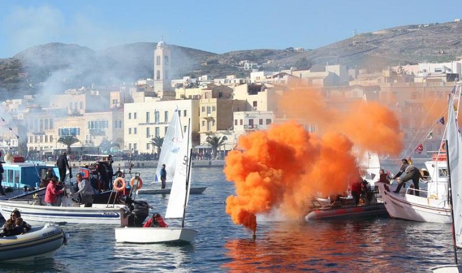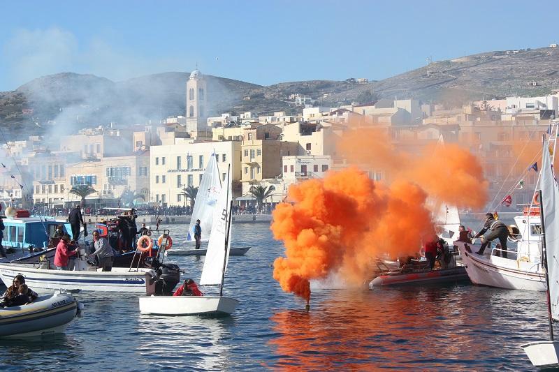 Η πομπή με επικεφαλής τη Φιλαρμονική του Δήμου Σύρου – Ερμούπολης, διήλθε δια των οδών Καραολή και Δημητρίου, Πλατείας Θεάτρου, έμπροσθεν ΟΤΕ, Ελευθερίου Βενιζέλου και Πέτρου Ράλλη, με κατάληξη την αποβάθρα του λιμανιού της πλατείας Κανάρη.