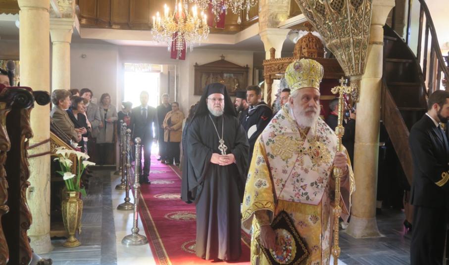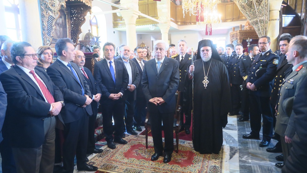 Προ του πέρατος της Θείας Λειτουργίας, ο Σεβασμιώτατος κ. Δωρόθεος Β' καλωσόρισε τον Εξοχώτατο Πρόεδρο της Δημοκρατίας και του προσέφερε συμβολικά αντίγραφο μικρού πλοιαρίου, ευχόμενος" ως καλός και ικανός πηδαλιούχος του σκάφους της Ελλάδος, να το οδηγεί ασφαλές σε λιμάνια ειρήνης, προόδου και ευημερίας".