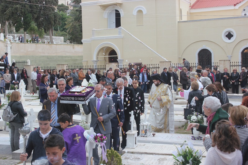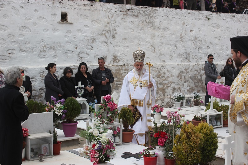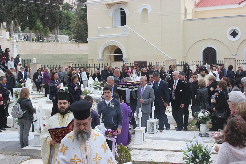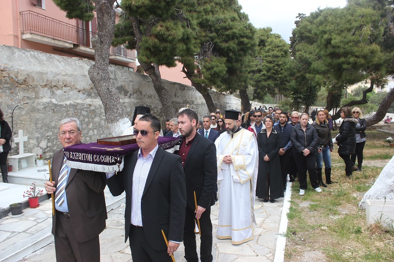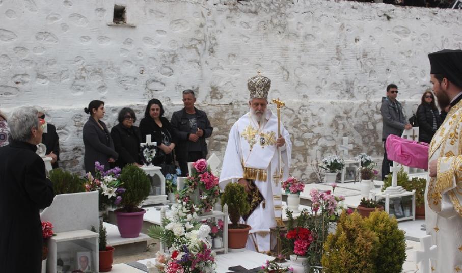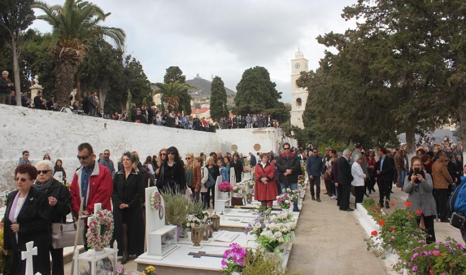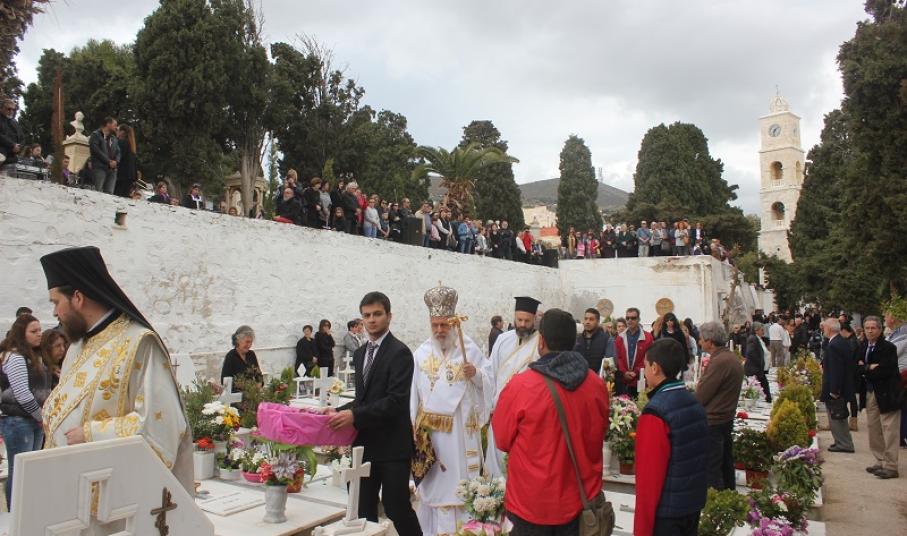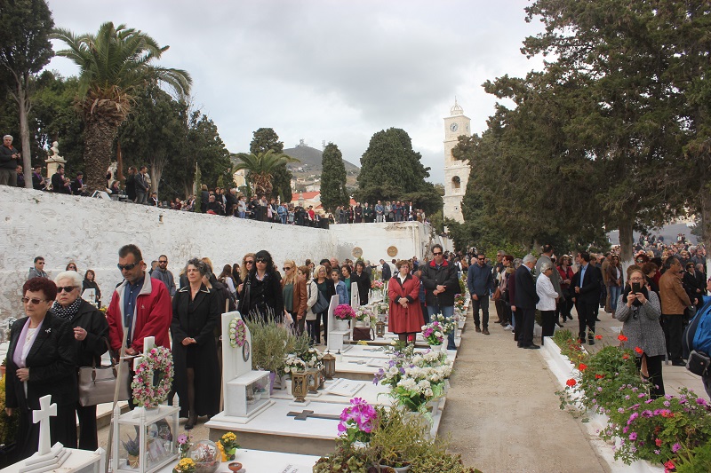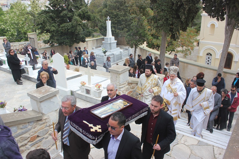 Συγκίνηση, ρίγος κι ένα έντονο συναίσθημα λύπης και νοσταλγίας για τα αγαπημένα τους πρόσωπα, που έφυγαν από κοντά τους, αφήνοντας δυσαναπλήρωτο κοινό στις καρδιές τους, ένιωσαν όλοι όσοι παρευρέθηκαν το μεσημέρι της Μεγάλης Παρασκευής στη λιτάνευση του Επιταφίου στο Κοιμητήριο του Ιερού Ναού Αγίου Γεωργίου, προεξάρχοντος του Σεβασμιωτάτου Μητροπολίτη Σύρου κ. Δωροθέου Β’.