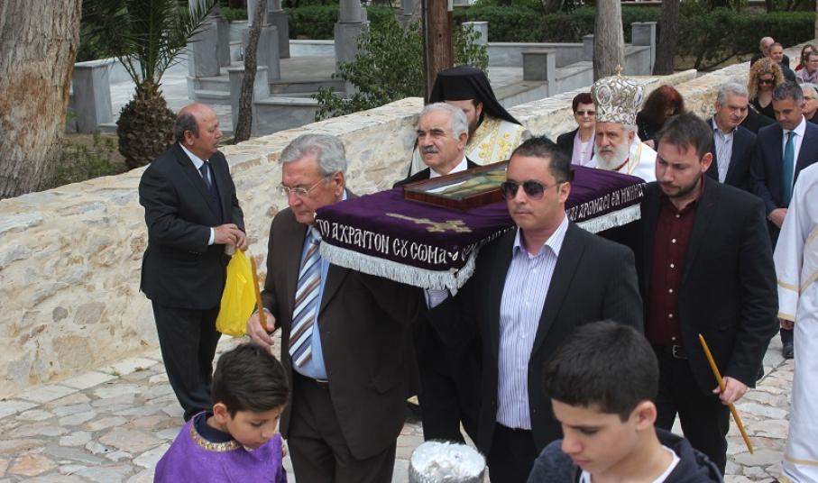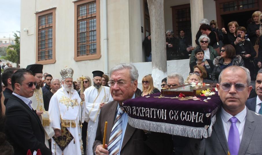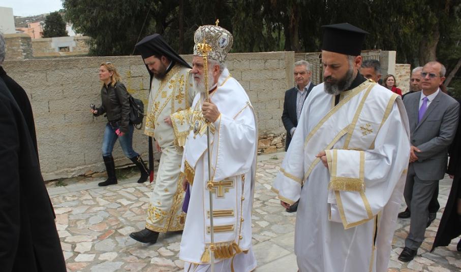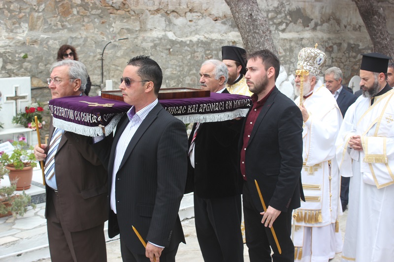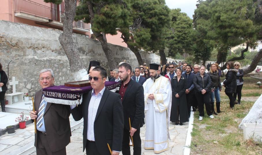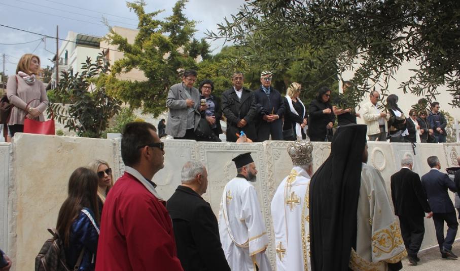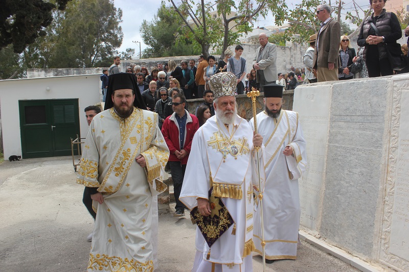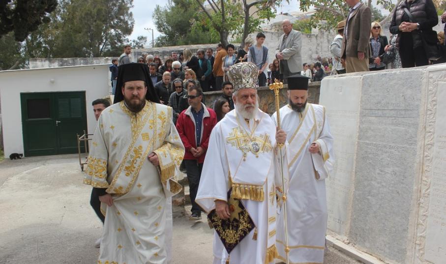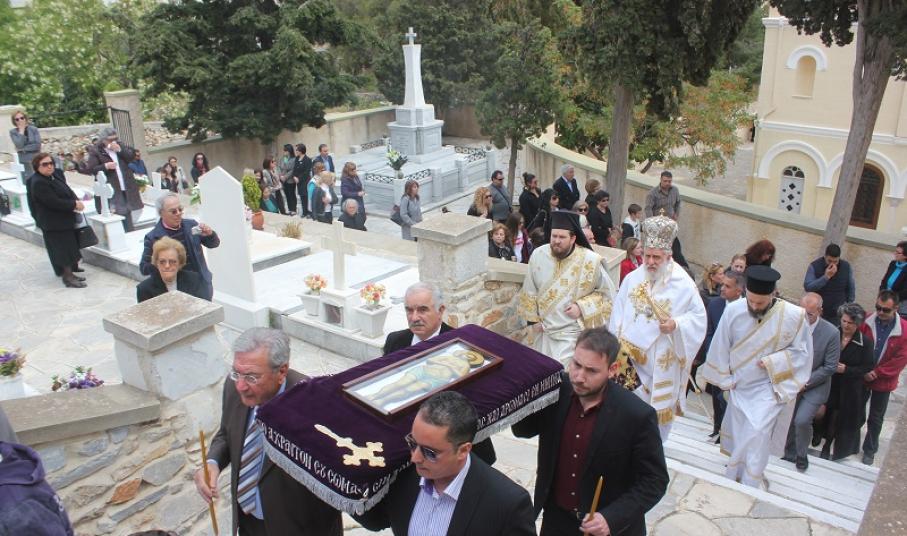 Συγκίνηση, ρίγος κι ένα έντονο συναίσθημα λύπης και νοσταλγίας για τα αγαπημένα τους πρόσωπα, που έφυγαν από κοντά τους, αφήνοντας δυσαναπλήρωτο κοινό στις καρδιές τους, ένιωσαν όλοι όσοι παρευρέθηκαν το μεσημέρι της Μεγάλης Παρασκευής στη λιτάνευση του Επιταφίου στο Κοιμητήριο του Ιερού Ναού Αγίου Γεωργίου, προεξάρχοντος του Σεβασμιωτάτου Μητροπολίτη Σύρου κ. Δωροθέου Β’.