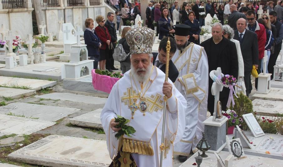 Στο μήνυμά του, ο Σεβασμιώτατος κ. Δωρόθεος, τόνισε ότι, κάθε χρόνο, τέτοια ημέρα ο Χριστός, ο Μεγάλος νεκρός που όσοι τον σταύρωσαν, νόμισαν ότι ηττήθηκε από τον Θάνατο, αναστημένος από τους νεκρούς καλεί όλους τους κεκοιμημένους που βρίσκονται στους τάφους, στο οστεοφυλάκιο και τα χωνευτήρια, να τον ακολουθήσουν σε αυτόν τον δρόμο από τον θάνατο στη ζωή και από τη φθορά στην Ανάσταση.