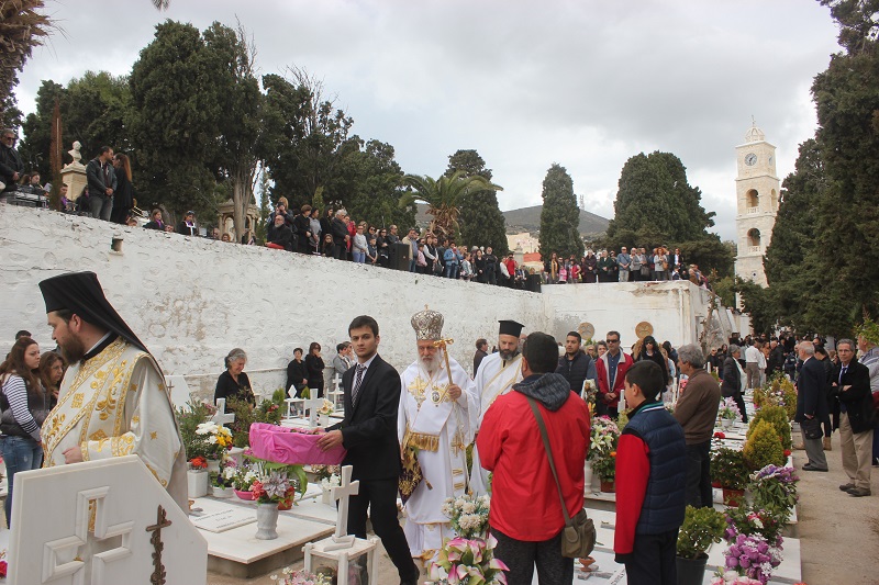 «Οι νεκροί ενταφιάζονται για να καταδείξουν μέσα από τον ενταφιασμό τους το μήνυμα της Αναστάσεως. Μοιάζουν σαν τους σπόρους, που τον χειμώνα αναπαύονται μέσα στη γη, ενώ την άνοιξη αρχίζουν σιγά σιγά να βγάζουν τα όμορφα και ευώδη λουλούδια των καιρών. Εδώ που είμαστε, καθώς αγκαλιάζουμε τα πρόσωπά τους, καθώς περιποιούμαστε τους λευκομάρμαρους τάφους τους, καθώς τους στολίζουμε με λουλούδια και τους ραίνουμε με τα δάκρυα του αποχωρισμού, είναι σαν να τους λέμε «ξέρουμε ότι είστε εδώ, ότι δεν χαθήκατε, ότι μας ακούτε, ότι μας αισθάνεστε, ότι απολαμβάνετε αυτά τα λίγα πια που έχουμε να σας προσφέρουμε, ότι μέσα από την ψυχή σας, που είναι γεμάτη ουράνιο φως θέλετε να μας ευχαριστήσετε, αλλά δεν μπορούμε να σας ακούσουμε».