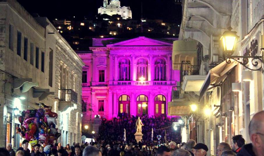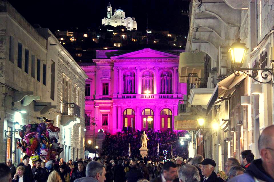 «Η Σύρος σας καλωσορίζει με ανοιχτή την αγκαλιά της και σας καλεί να περιδιαβείτε τους αρχοντικούς δρόμους της, να επισκεφτείτε τους μεγαλοπρεπείς ναούς της, να θαυμάσετε στο πρόσωπο των νεοκλασικών κτιρίων την ιστορία της που ο χρόνος δεν κατόρθωσε να ξεφτίσει και να σταθείτε μπροστά σε αυτόν τον Παρθενώνα των Δημαρχείων των πόλεων της Ελλάδας για να ανακαλύψετε τα δαχτυλικά αποτυπώματα όλων εκείνων των αγίων πατέρων και μητέρων μας που έφτασαν εδώ από τα νησιά του Βορείου Αιγαίου και άλλες περιοχές της ελληνικής γης μετά τις καταστροφές και τους σφαγιασμούς των τουρκικών ορδών και ίδρυσαν αυτή την πόλη».