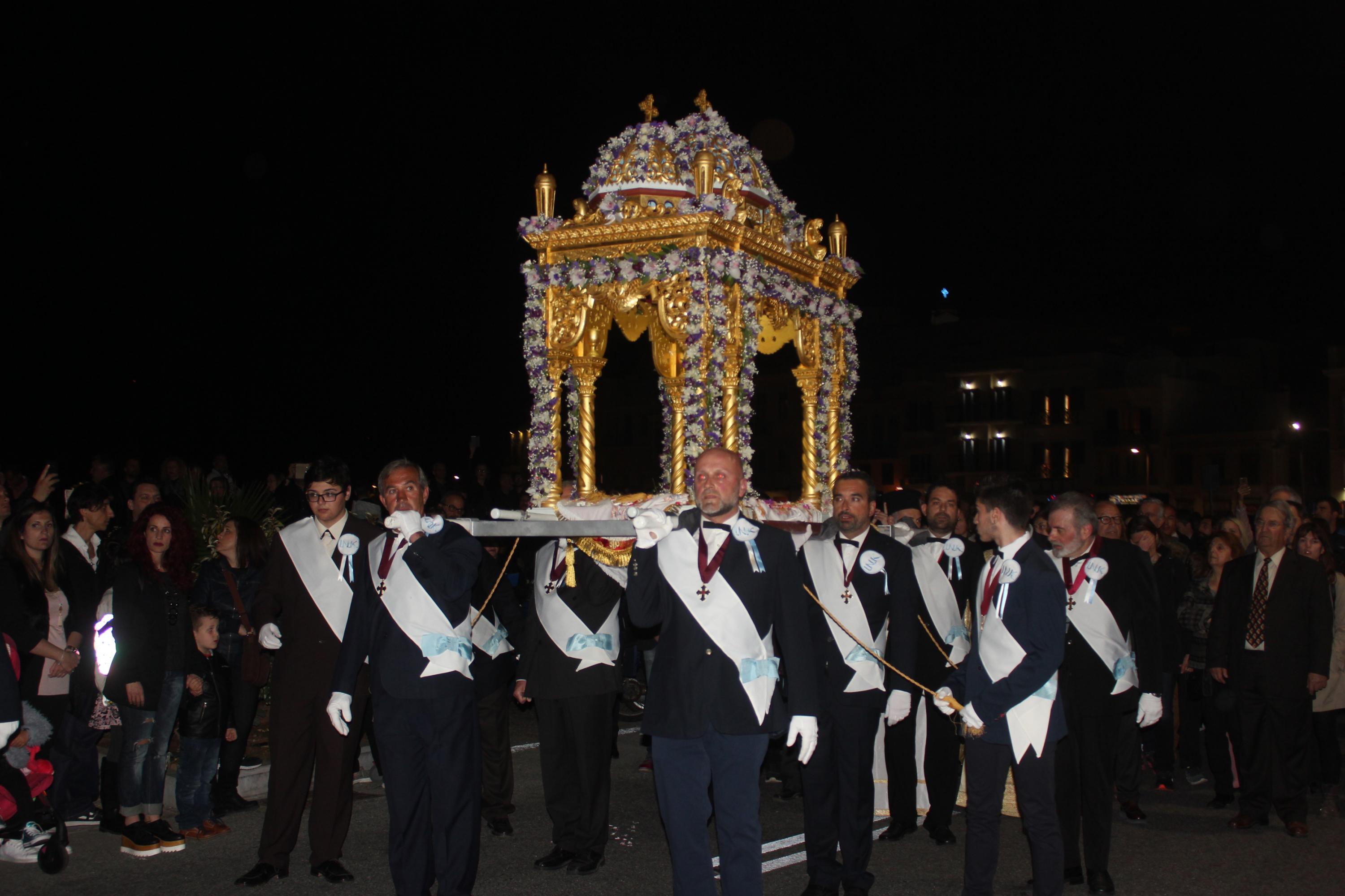 Τη λιτάνευση πλαισίωσε η Φιλαρμονική του Δήμου Σύρου – Ερμούπολης, παιανίζοντας πένθιμα εμβατήρια, υπό τη διεύθυνση της αρχιμουσικού Alice Labarche.