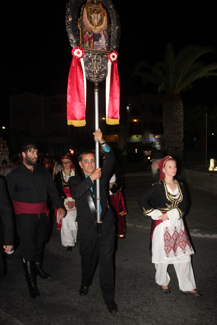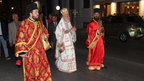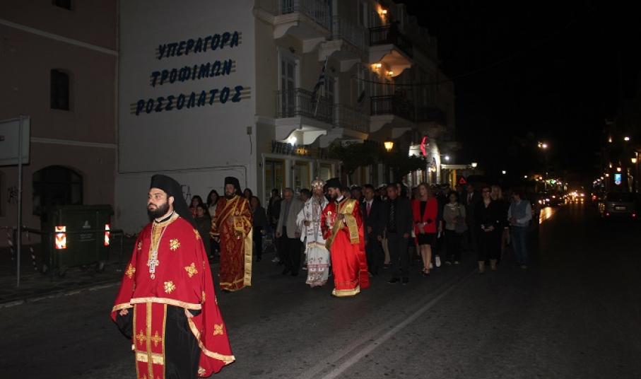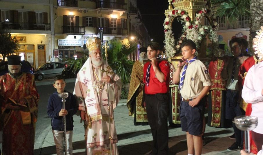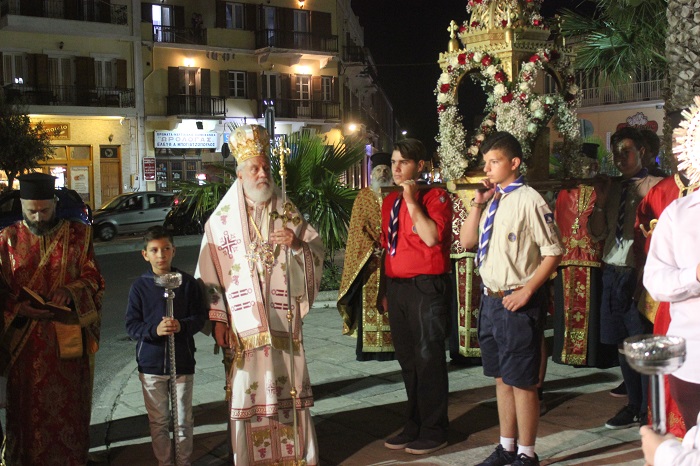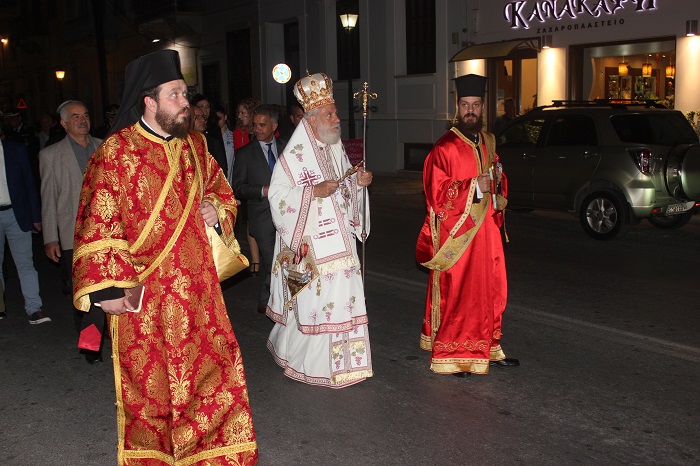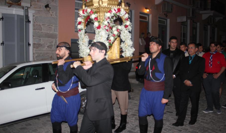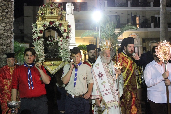 Στον Εόρτιο Εσπερινό, ο οποίος τελέστηκε στον ομώνυμο Κοιμητηριακό Ναό στην Ερμούπολη χοροστάτησε ο Σεβασμιώτατος Μητροπολίτης Σύρου κ. Δωρόθεος Β’, ο οποίος στη συνέχεια προέστη της Λιτανεύσεως της Εφεστίου Εικόνος του Ναού.
