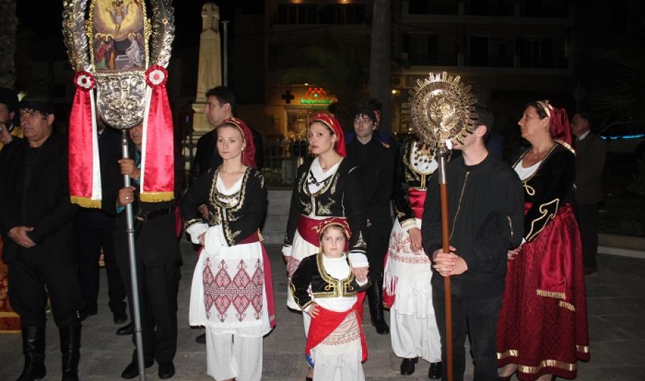 Κατά τη διάρκεια της Λιτανείας, την οποία πλαισίωσαν Πρόσκοποι και Μαθητές των Κατηχητικών Σχολείων Αγίου Γεωργίου και Αγίου Νικολάου και τα μέλη του Συλλόγου Κρητών Σύρου, τα οποία με παραδοσιακές στολές έφεραν επί των ώμων τους την Αγία Εικόνα, εγένετο δέηση στην Πλατεία Ηρώων, έναντι του Βαρδάκειου και Πρώιου Νοσοκομείου Σύρου, του πρώτου Νοσηλευτικού Ιδρύματος της Νεότερης Ελλάδας, υπέρ υγείας και αναρρώσεως πάντων των εν ασθενεία όντων.