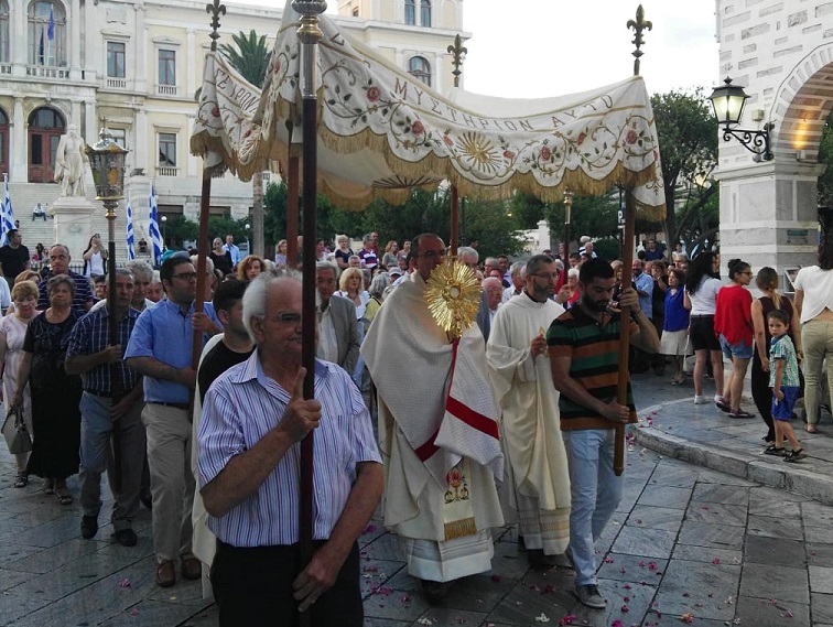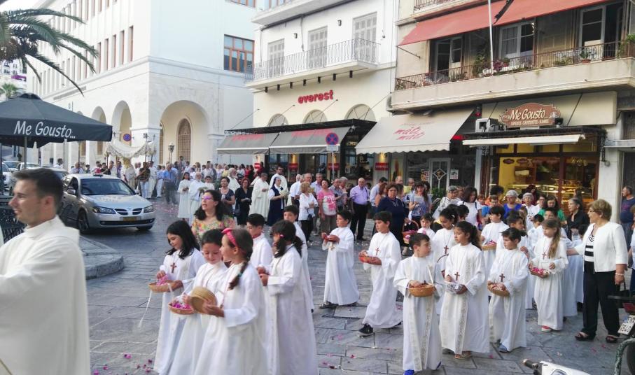 Όπως κάθε χρόνο, η Καθολική Εκκλησία και η Καθολική κοινότητα του νησιού εκφράζει έντονα την πίστη και τον σεβασμό της απέναντι στη “Δωρεά του πολύτιμου Σώματος κι Αίματος του Κυρίου, Ιησού Χριστού”, συμμετέχοντας πνευματικά στη θρησκευτική εορτή, που αποτελεί μία εκ των σημαντικότερων στη διάρκεια του έτους.