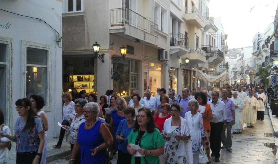 Λιτανεία στους δρόμους της Ερμούπολης με τη συμμετοχή του Καθολικού Επισκόπου Σύρου, Σεβ. π. Πέτρου Στεφάνου