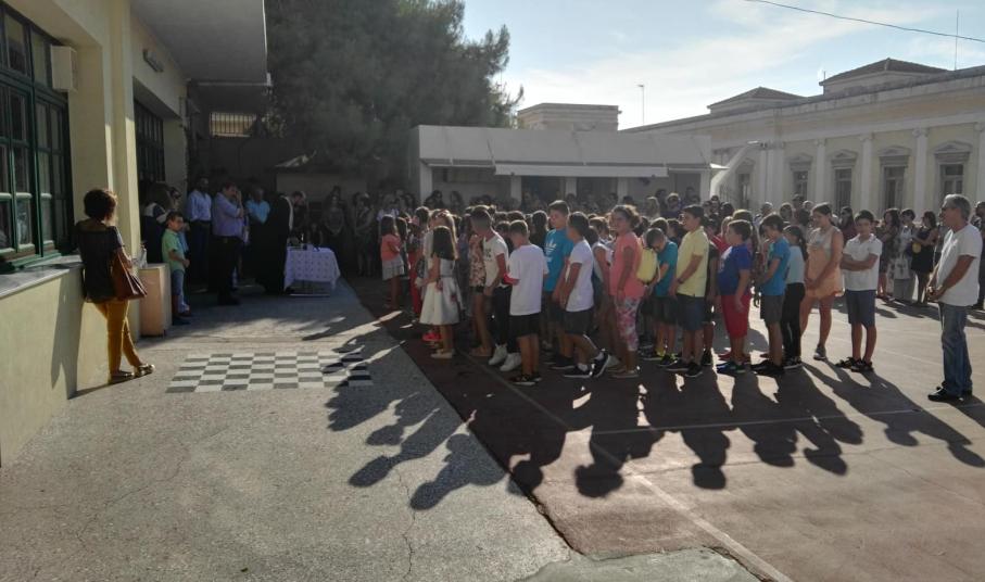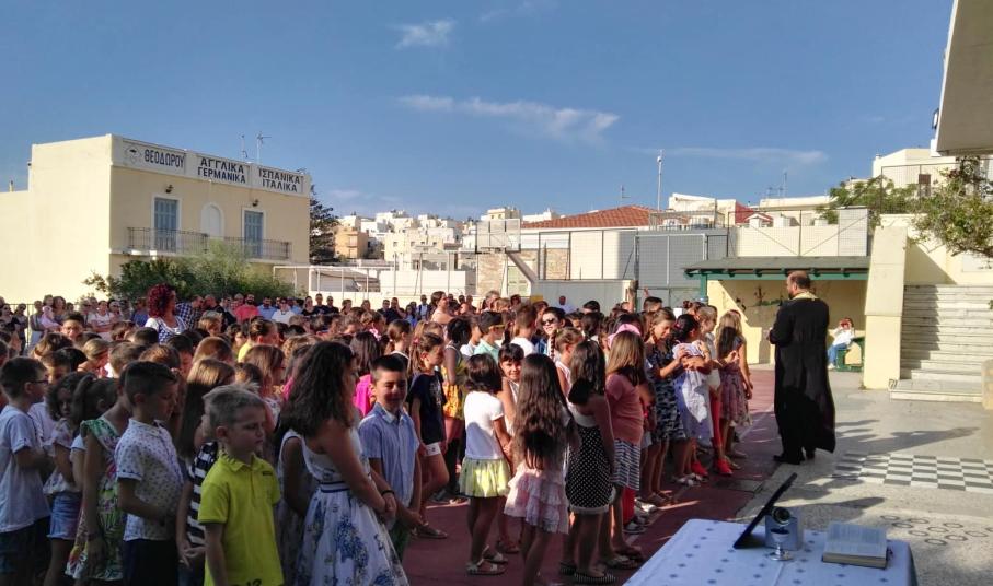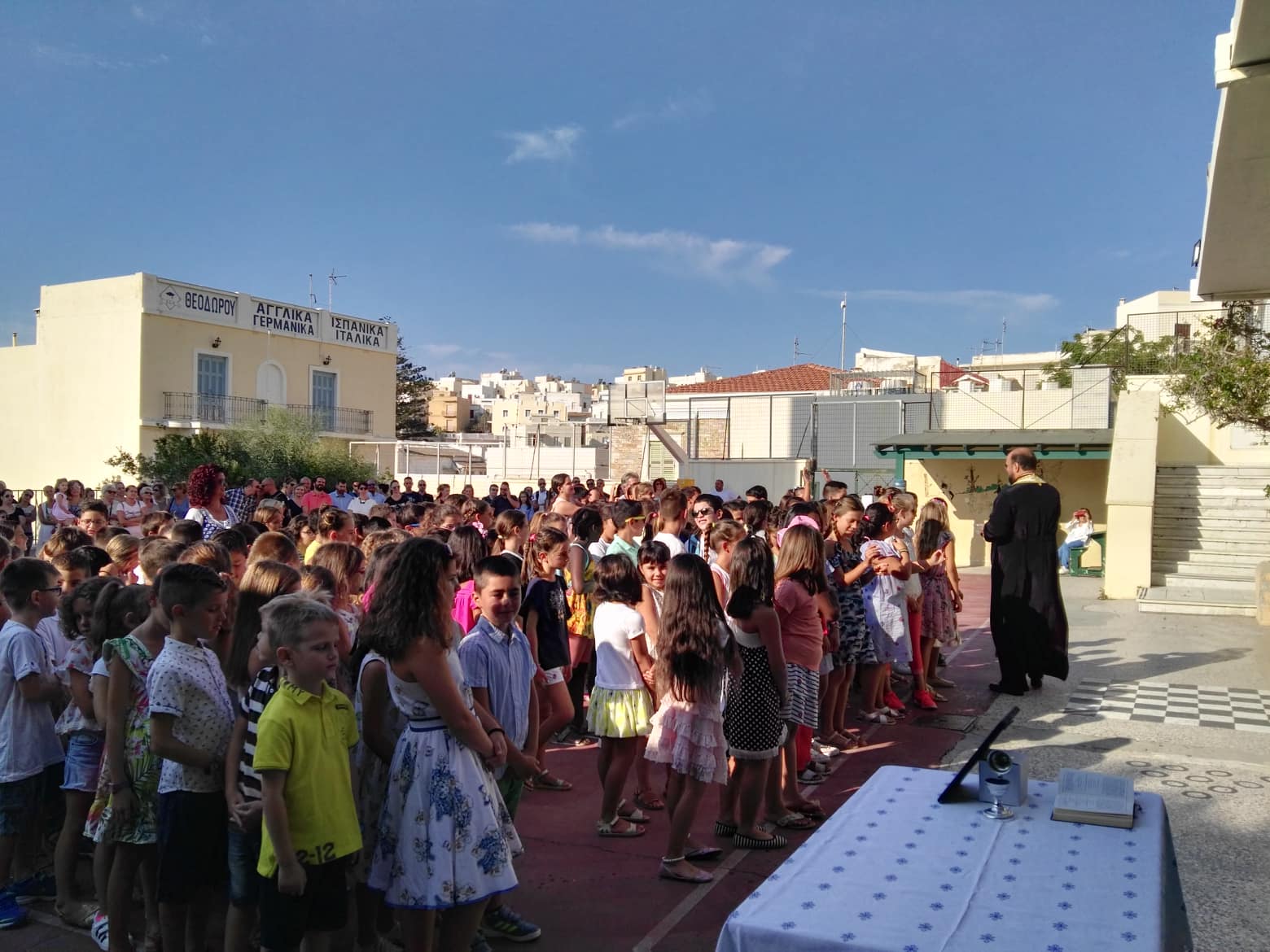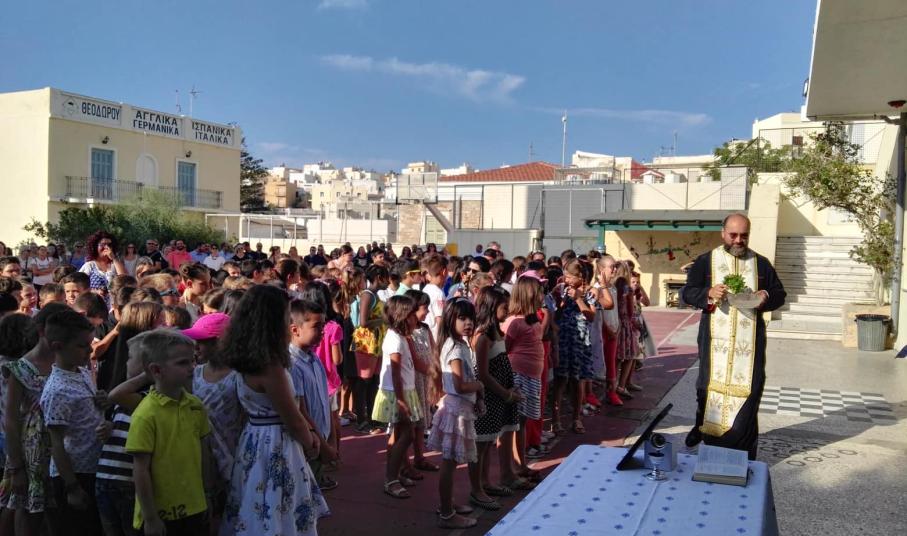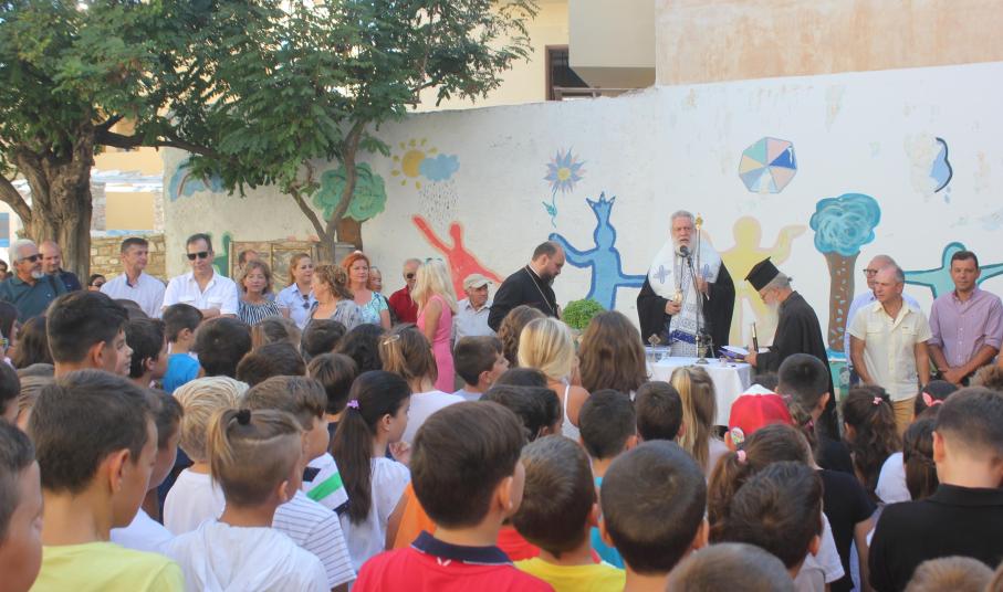 Με την ξεχωριστή παιχνιδιάρικη διάθεση που τα διακρίνει, τα μικρά παιδιά των σχολείων της Πρωτοβάθμιας Εκπαίδευσης στη Σύρο καλωσόρισαν τη νέα σχολική χρονιά, μεταβαίνοντας στα Νηπιαγωγεία και τα Δημοτικά για την τέλεση του καθιερωμένου αγιασμού.
