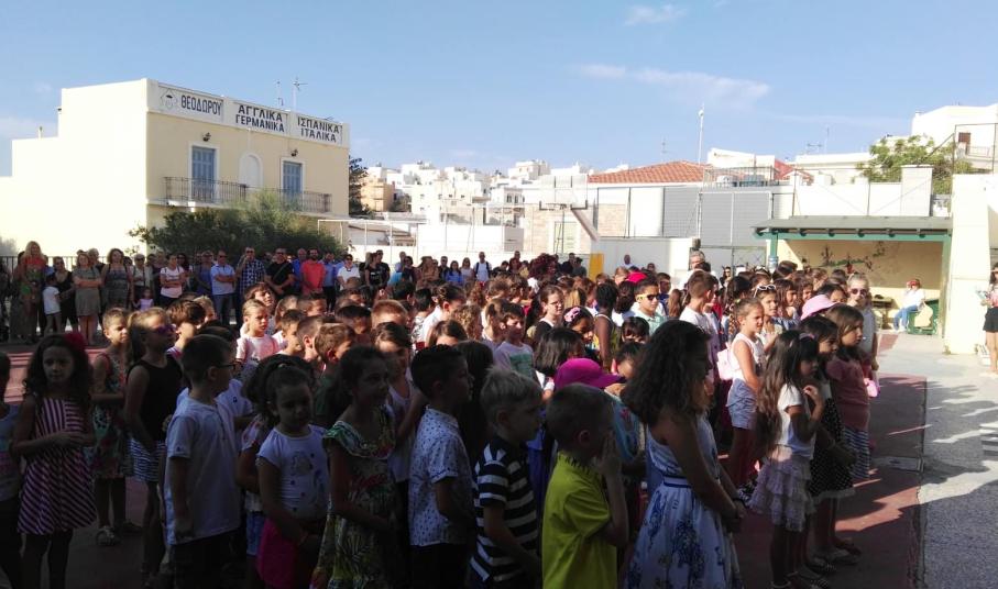 Σημειώνεται πως διαβάστηκε και το μήνυμα της Διευθύντριας της Πρωτοβάθμιας Εκπαίδευσης Κυκλάδων, Μαρκέλλας Παραμυθιώτου, η οποία αφού καλωσόρισε τους μαθητές για το φετινό σχολικό έτος, ανέφερε πως στις σχολικές μονάδες έχουν τοποθετηθεί όλοι οι αναπληρωτές εκπαιδευτικοί. Τα βιβλία των μαθητών θα δοθούν αύριο τις πρωινές ώρες.