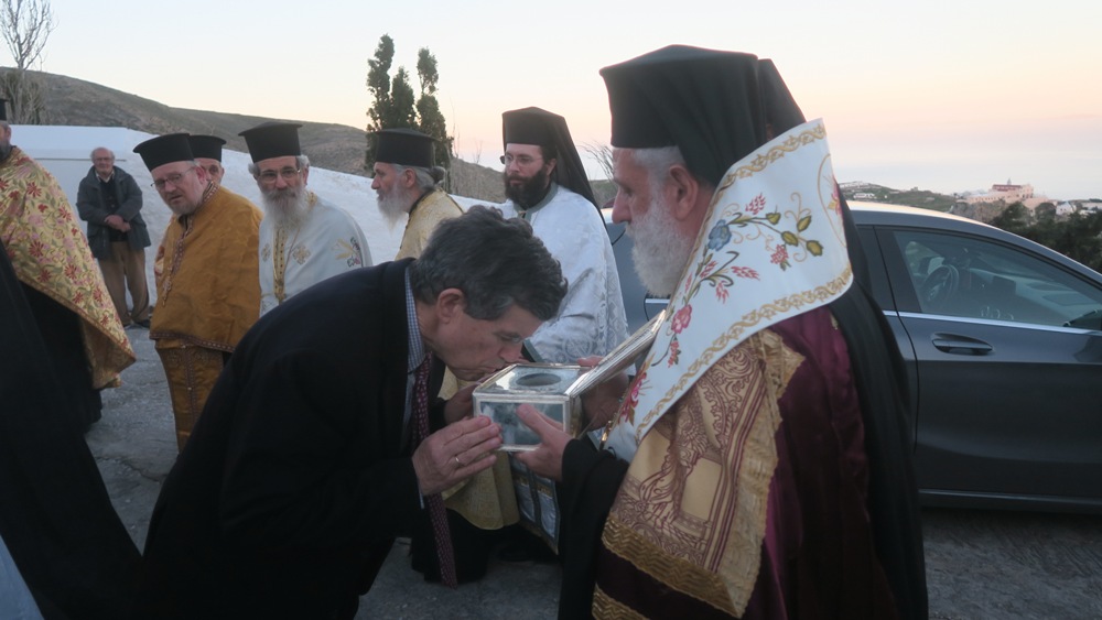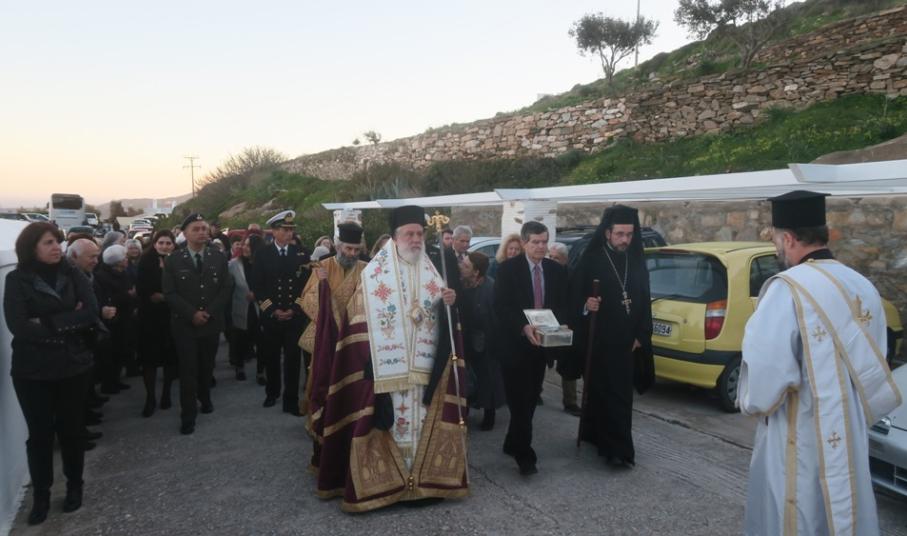 Πλήθος πιστών, με επικεφαλής τον Σεβασμιώτατο κ. Δωρόθεο Β’ και τον ιερό Κλήρο της Σύρου, υπεδέχθησαν στον αύλιο χώρο του Ιερού Ναού της Αγίας Παρασκευής, στην Αληθινή της Σύρου, την τιμία Κάρα του Αγίου Μηνά, που διακόμισε από την Ιερά Μονή Ζωοδόχου Πηγής Άνδρου, η Ηγουμενεύουσα Μοναχή Παρθενία.