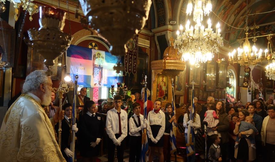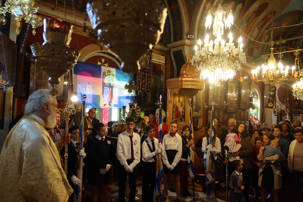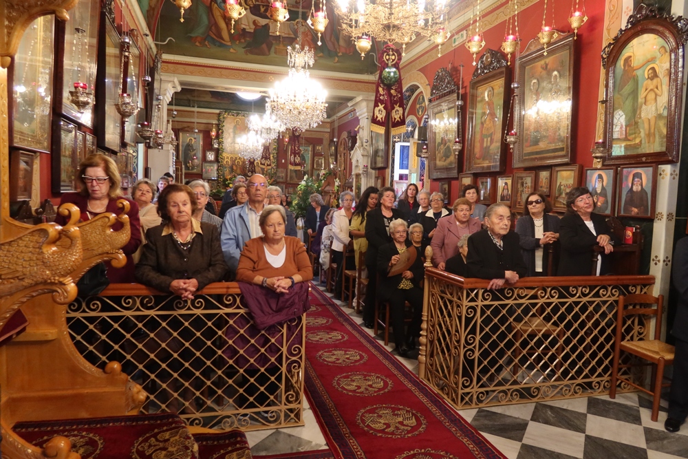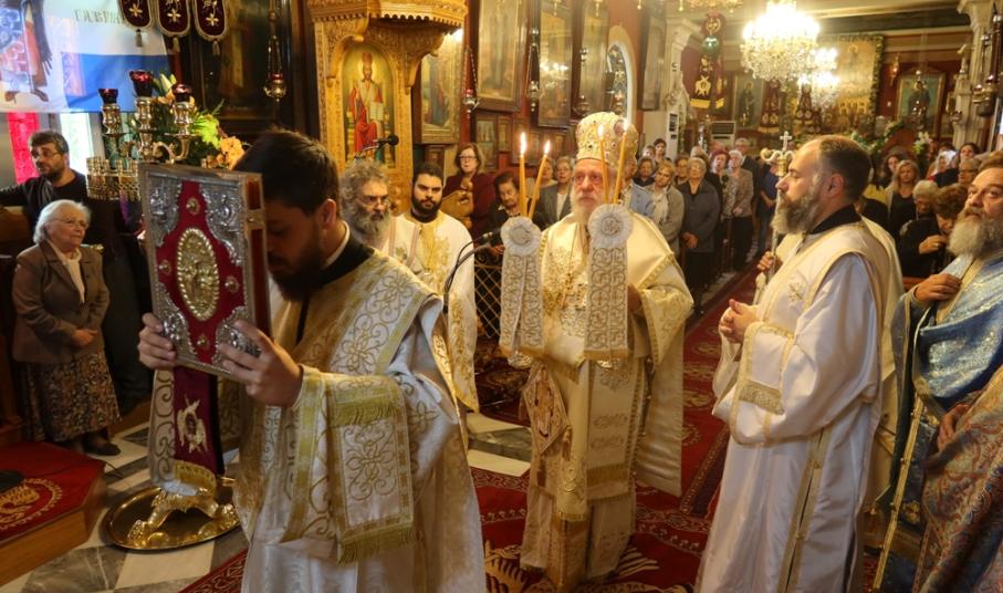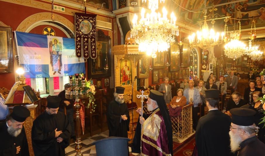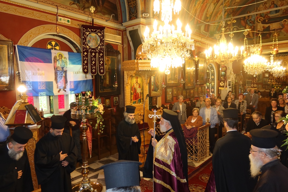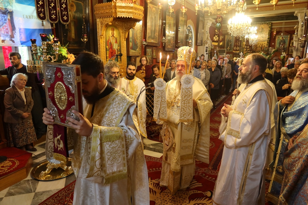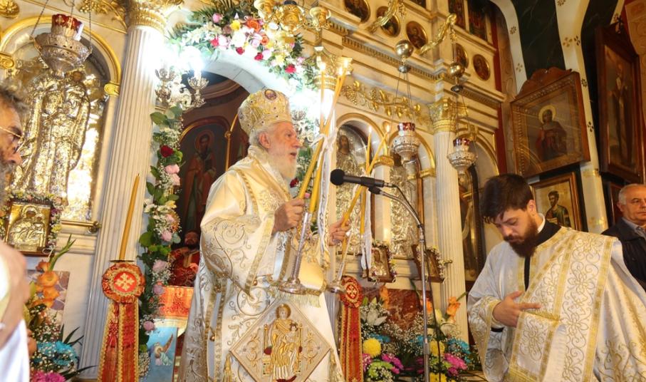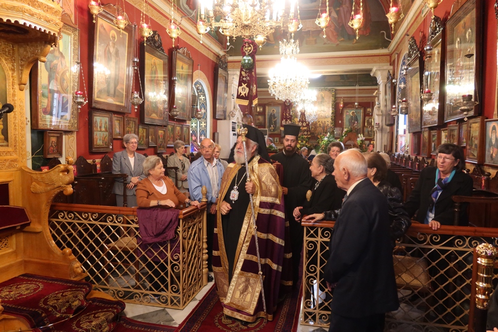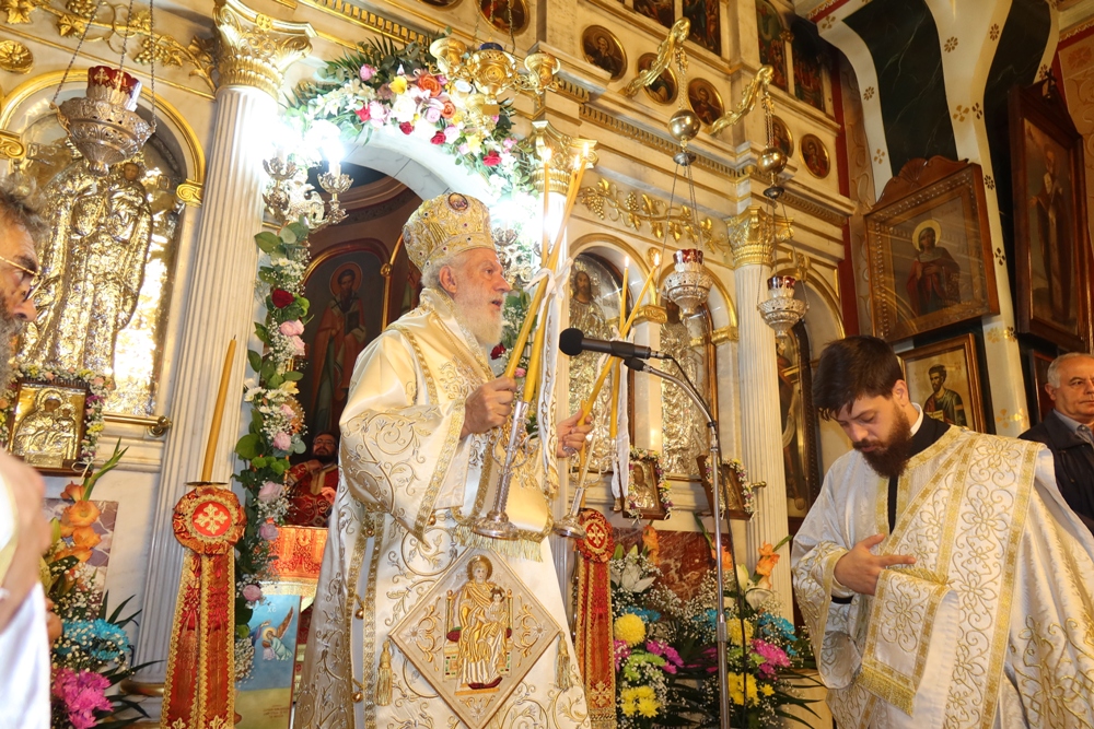 Ευχαρίστησε και συνεχάρη τον Εφημέριο του Ναού, Αιδεσιμ. Κωνστ. Χαρούλη, και τους συνεργάτες του, Επιτρόπους, Ιεροψάλτες και διακονητές, για για την προετοιμασία και διοργάνωση της πανηγύρεως και ευχήθηκε προς όλους και ιδιαίτερα προς τους σήμερα εορτάζοντες.