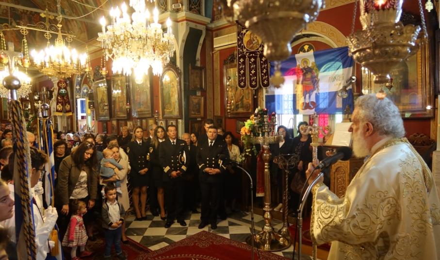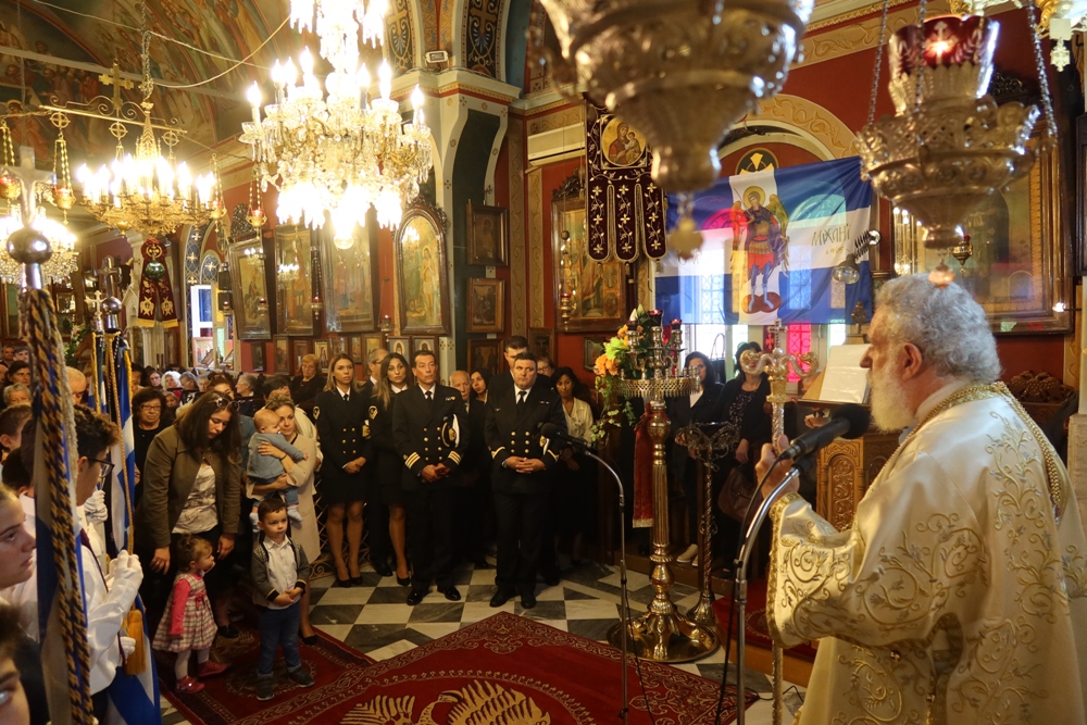 Ο Σεβασμιώτατος κ. Δωρόθεος Β΄ ιερούργησε χθες στον πανηγυρίζοντα Ιερό Ναό των Παμμεγίστων Ταξιαρχών Ερμουπόλεως, με τη συμμετοχή του Εφημερίου του Ναού και Εφημερίων της Σύρου και την παρουσία του Χωρικού Αντιπεριφερειάρχη Επικοινωνιών και Μεταφορών κ. Μάρκου Δαδάου, του Λιμενάρχη Σύρου, Πλωτάρχη ΛΣ κ. Ιωάννη Βαμβακούση, και Αξιωματικών του Λιμενικού Σώματος, του Προϊσταμένου της Δευτεροβάθμιας Εκπαίδευσης Κυκλάδων κ. Χρ. Μιχαλόπουλου, του Προέδρου του Σωματείου Συνταξιούχων ΙΚΑ κ. Ι. Χαρίτου, του επί τιμή Νομάρχη κ. Δημ. Μπάιλα, Μαθητών και Μαθητριών των Γυμνασίων και Δημοτικών Σχολείων της περιοχής, συνοδευομένων από τους Εκπαιδευτικούς τους, με τις σημαίες τους, που πλαισίωσαν και την επακολουθήσασα λιτανεία της ιεράς Εικόνος των Ταξιαρχών, και πλήθους πιστών, οι οποίοι είχαν κατακλύσει το Ναό και τον αύλιο χώρο του.