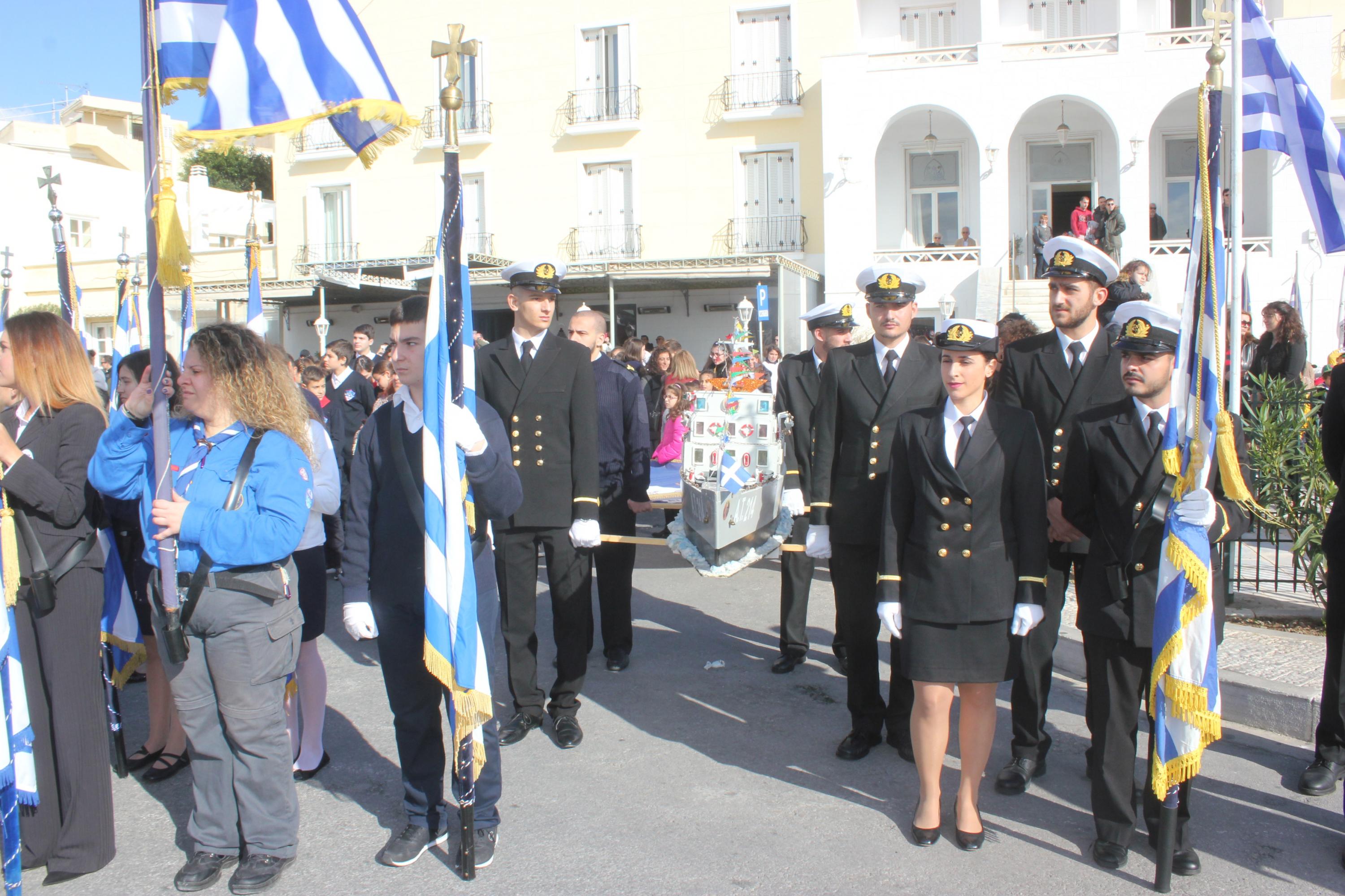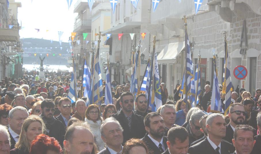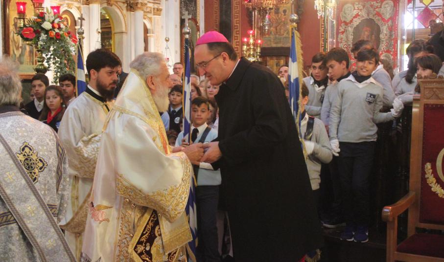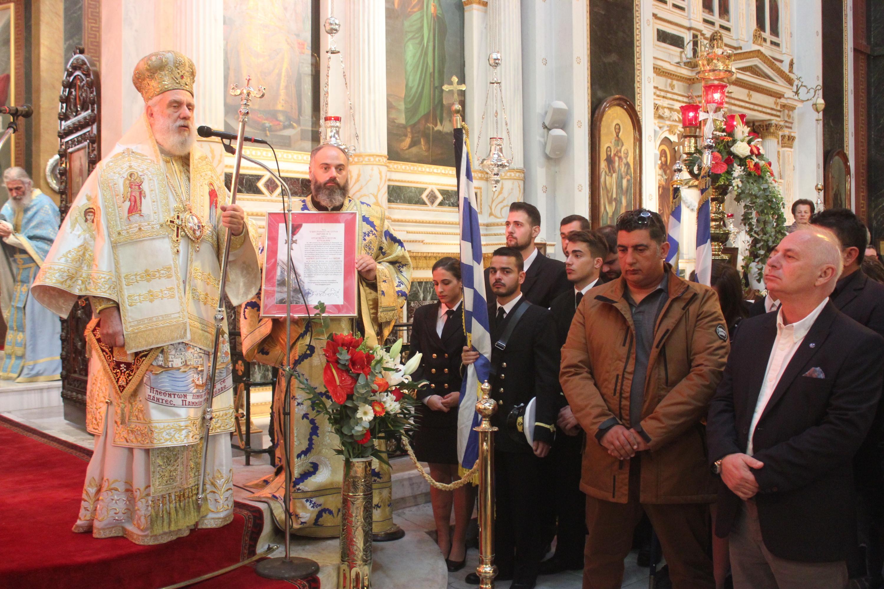 Συγκινητική ήταν η αθρόα προσέλευση εκπροσώπων της τοπικής αυτοδιοίκησης α’ και β’ βαθμού, των στρατιωτικών αρχών και των σωμάτων ασφαλείας, τοπικών συλλόγων και σωματείων, εκπαιδευτικών, μαθητών και πιστών στον περικαλή Καθεδρικό Ναό του Αγίου Νικολάου, όπου τελέστηκε η Θεία Λειτουργία, ιερουργούντος του Σεβασμιωτάτου Μητροπολίτη Σύρου κ. Δωροθέου Β' με τη συμμετοχή Εφημερίων του νησιού.