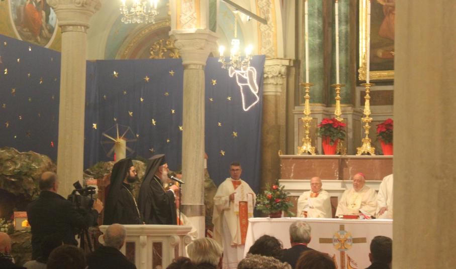 Στο κήρυγμά του, ο Καθολικός Επίσκοπος Σύρου Σεβ. π. Πέτρος Στεφάνου ανέγνωσε το φετινό μήνυμα του πάπα Φραγκίσκου για την 53η Παγκόσμια Ημέρα Προσευχής για την Ειρήνη με θέμα: «Η ειρήνη ως πορεία ελπίδας: Διάλογος, συμφιλίωση και οικολογική μεταστροφή».