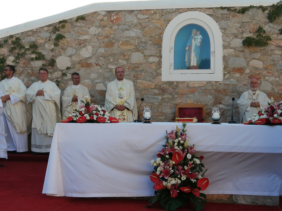 Στο Πολυαρχιερατικό Συλλείτουργο που τελέστηκε χθες το απόγευμα στο Ιερό Προσκύνημα Παναγίας Φανερωμένης, στα Χρούσσα, παρουσία της Βουλευτή Κυκλάδων, Κατερίνας Μονογυιού, εκπροσώπων των τοπικών αρχών και πιστών του νησιού, προΐστατο ο καθολικός Αρχιεπίσκοπος Αθηνών, π. Σεβαστιανός Ροσσολάτος.