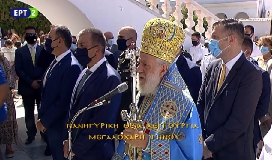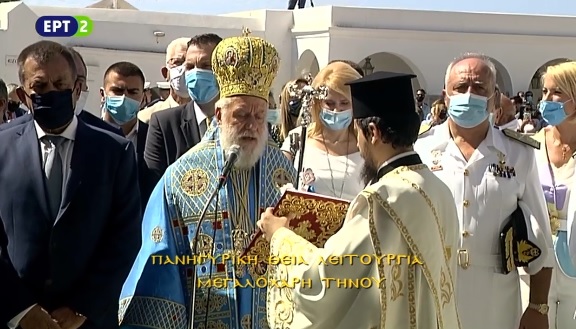 Όπως είχε ανακοινωθεί από το Πανελλήνιο Ιερό Ίδρυμα Ευαγγελιστρίας Τήνου, φέτος, δεν θα πραγματοποιηθεί η λιτανεία της ιερής εικόνας της Παναγίας, ωστόσο, από το πρωί στις 8.30 τελείται η Αρχιερατική Θεία Λειτουργία, προεξάρχοντος του Σεβασμιωτάτου Μητροπολίτη Σύρου και Τήνου, κ. Δωροθέου Β΄, παρουσία εκπροσώπων της ελληνικής κυβέρνησης, βουλευτών του νομού, εκπροσώπων της Αυτοδιοίκησης Α΄ και Β΄ βαθμού, καθώς και παρουσία κάποιων πιστών.