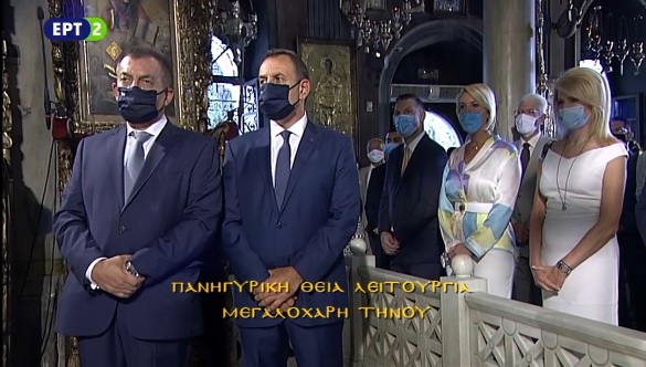 Σημειώνεται πως, μέσα στον ναό τα πρόσωπα δεν υπερβαίνουν τα εξήντα, τα οποία στο σύνολό τους φορούν μάσκες, ενώ αμέσως μετά θα γίνει η επιμνημόσυνη δέηση και οι καταθέσεις στεφάνων στο κενοτάφιο του "ΕΛΛΗ", όπως επίσης θα ακουσθούν οι καθιερωμένοι κανονιοβολισμοί.