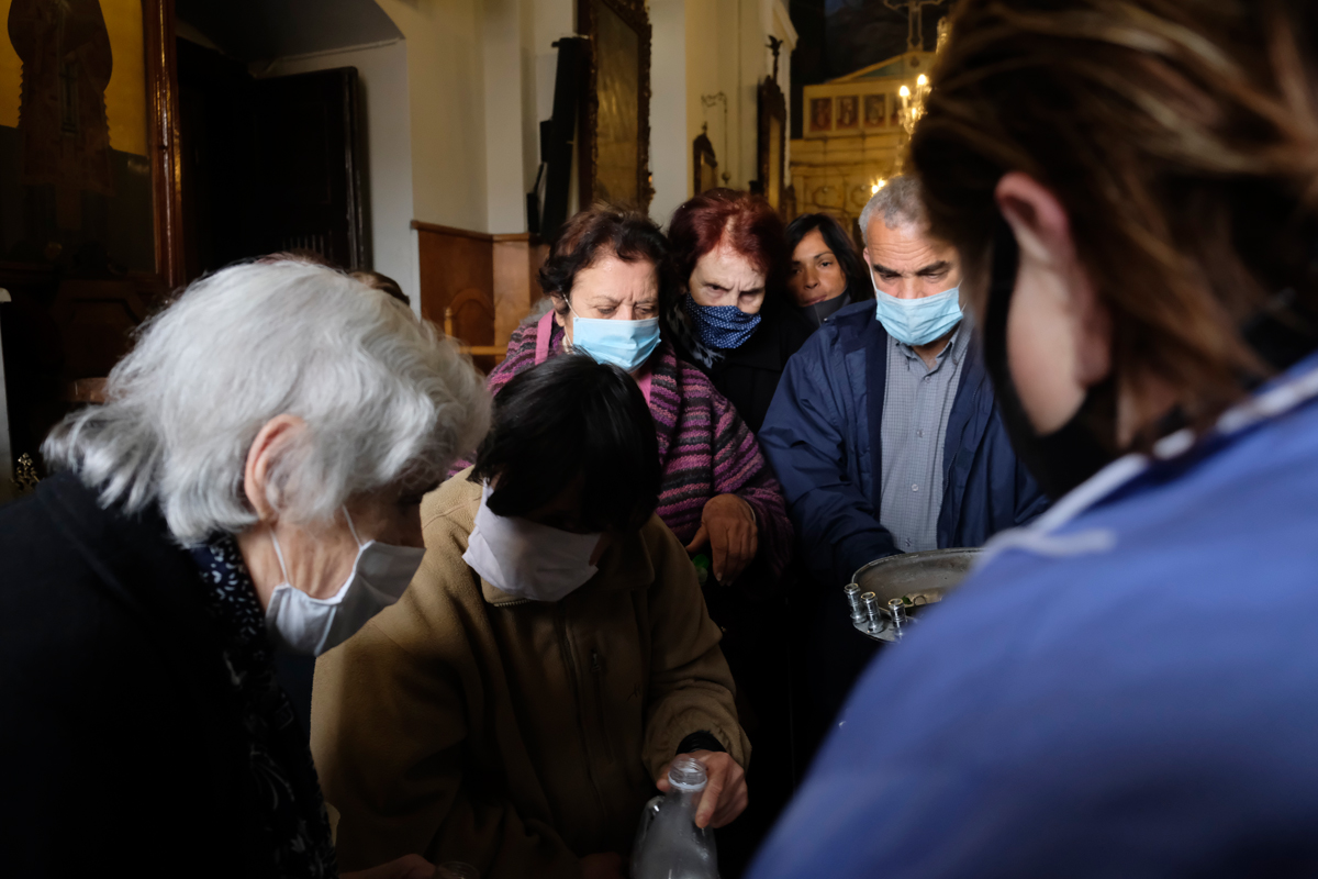 Τόσο κατά τη μετάληψη όσο και με το τέλος της Λειτουργίας όπου οι πιστοί έσπευδαν να φιλήσουν τον σταυρό και να λάβουν την ευλογία του ιερέα κανένα μέτρο δεν τηρήθηκε. Έσπευδαν μαζικώς για να προλάβουν πρώτοι να λάβουν την ευλογία του ιερέα.