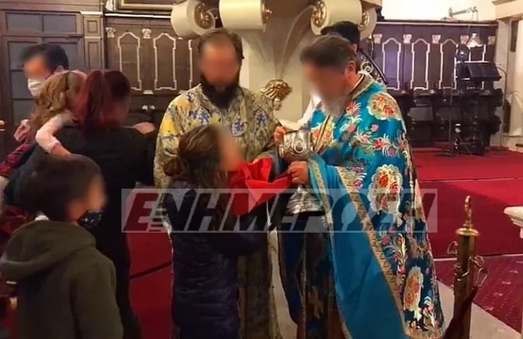 Αφού κοινώνησαν οι πιστοί, μικροί και μεγάλοι, ο Μητροπολίτης μόλις αντιλήφθηκε τους δημοσιογράφους, τους ζήτησε να φύγουν.
