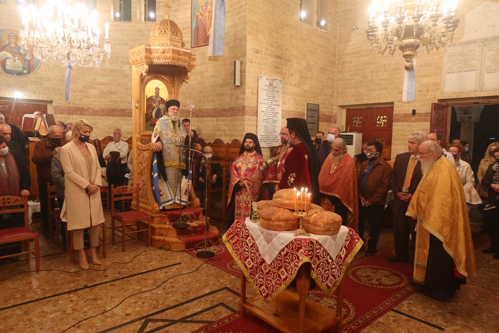 Ευχήθηκε, δε, ο Άγιος Δημήτριος να σκεπάζει και να προστατεύει την Πατρίδα μας, το νησί μας, την πόλη μας, τις οικογένειές μας, τα παιδιά μας, τα Σχολεία μας και να μας δίνει δύναμη να πορευόμαστε στη ζωή μας νικητές, όπως εκείνος.