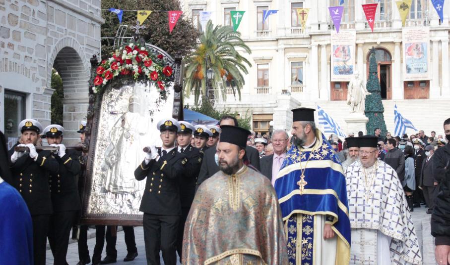 Τον πολιούχο της, προστάτη των ναυτικών και Μικρασιάτη άγιό της, γιόρτασαν ξανά η Ερμούπολη και η Σύρος, χθες το πρωί, με πάσα λαμπρότητα, μετά από δύο έτη πανδημίας, με τους Συριανούς και όσους συμμετείχαν στον θρησκευτικό εορτασμό να αισθάνθηκαν ανάταση και γαλήνη.