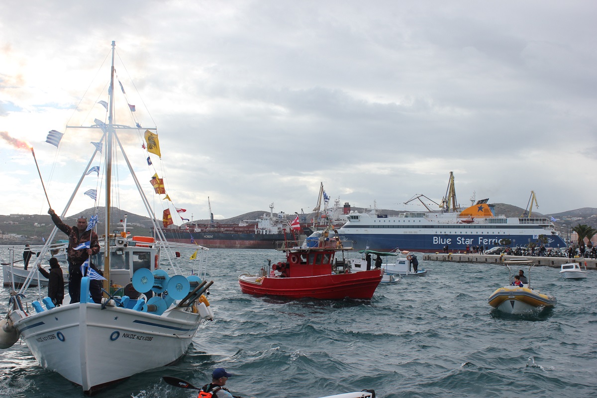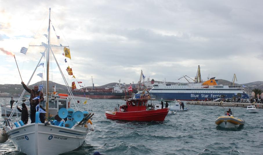 Αξίζει να αναφερθεί πως ταυτόχρονα με τη δέηση, κατέπλευσε στο λιμάνι και το Blue Star Paros, το οποίο με συριγμούς “συμμετείχε” στον εορτασμό του Αγίου Νικολάου όπως παρομοίως συμμετείχαν και διάφορα πλοιάρια που με καπνογόνα απέδωσαν τιμές στον προστάτη των ναυτικών.