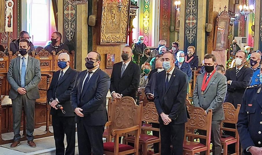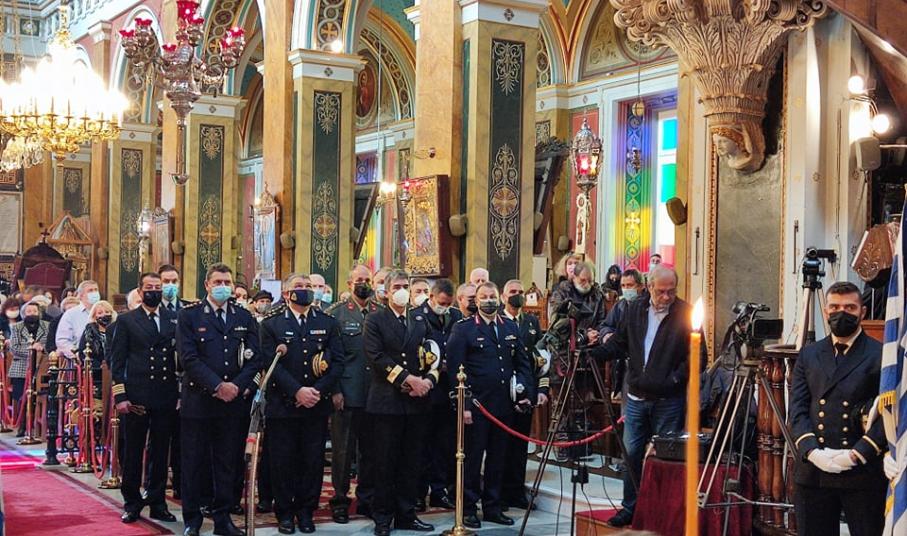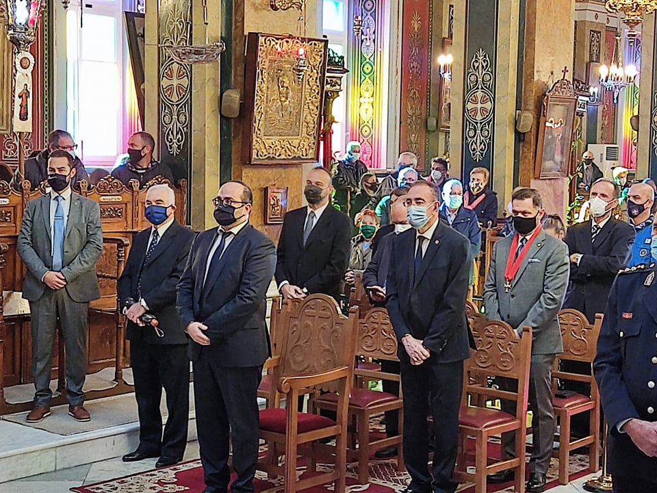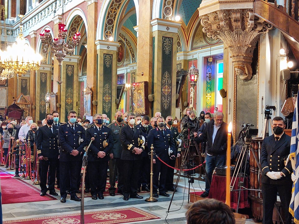 Οι πιστοί τηρώντας τα μέτρα ενάντια στην διασπορά της Covid-19 και φορώντας μάσκες, παρακολούθησαν την πανηγυρική Θεία Λειτουργία που τελέστηκε στον Ι.Ν. του Αγίου Νικολάου στην Ερμούπολη, από τον Σεβασμιώτατο Μητροπολίτη Σύρου, κ. Δωρόθεο Β΄, παρουσία του εκπροσώπου της Καθολικής Εκκλησίας Σύρου, π. Αντώνιου Βουτσίνου, του εκπροσώπου της κυβέρνησης, Γενικού Γραμματέα Νησιωτικής Πολιτικής, Μανώλη Κουτουλάκη, βουλευτών του νομού Κυκλάδων, του Δημάρχου Σύρου – Ερμούπολης, Νίκου Λειβαδάρα, εκπροσώπων του Α΄ και Β΄ Βαθμού της Αυτοδιοίκησης, του προέδρου του Επιμελητηρίου Κυκλάδων, Γιάννη Ρούσσου, του Διευθυντή της Πρωτοβάθμιας Εκπαίδευσης Κυκλάδων, Χρήστου Καφτηράνη, αλλά και εκπροσώπων της Αστυνομίας, του Λιμενικού Σώματος και της Πυροσβεστικής.