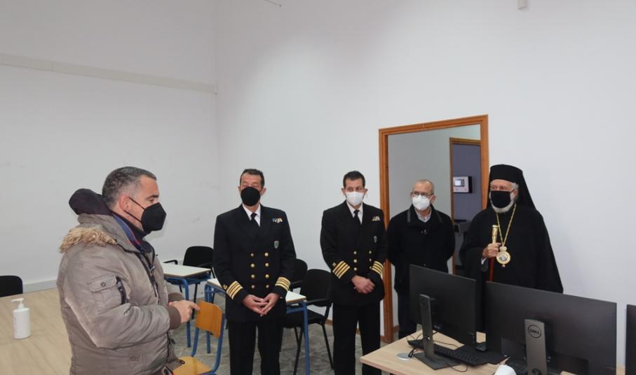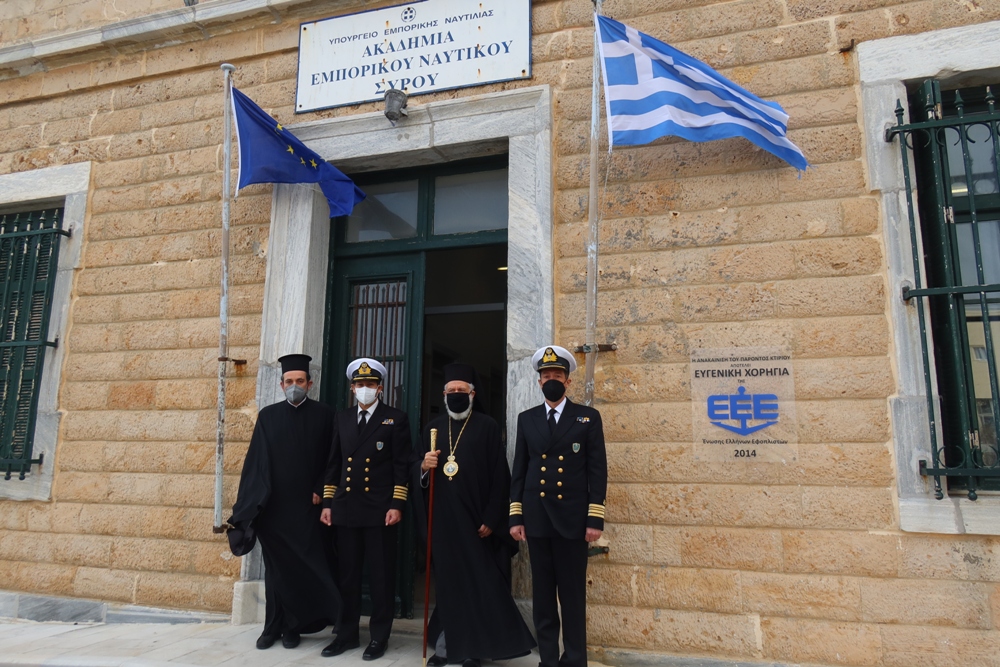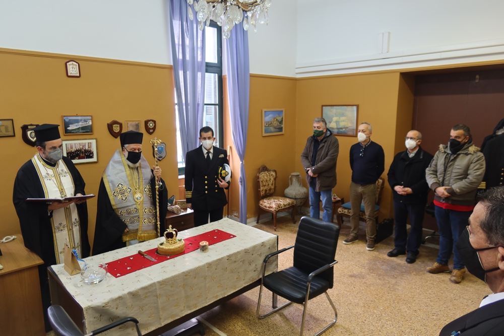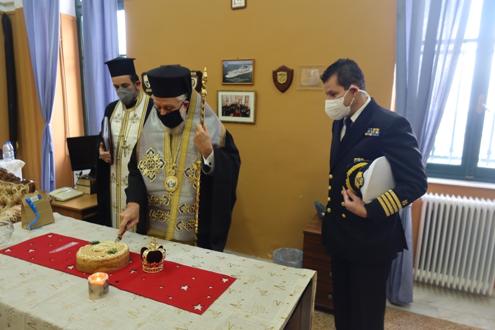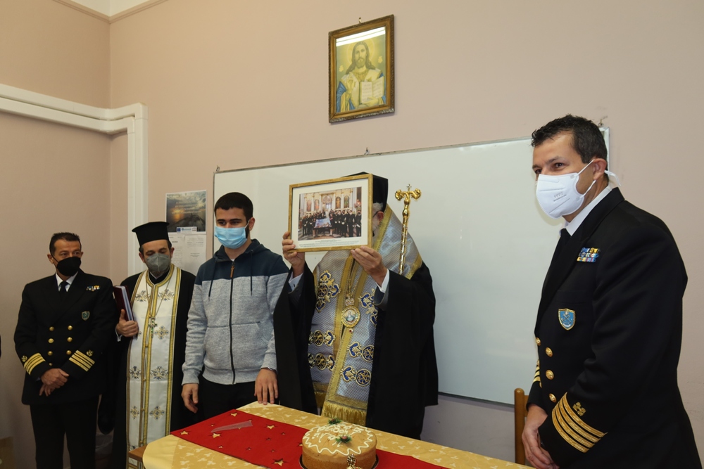 Κατόπιν προσκλήσεως του Διοικητού της Ακαδημίας Εμπορικού Ναυτικού Σύρου, Πλοιάρχου κ.Παναγιώτη Καραμίτσα, και με την παρουσία του Λιμενάρχη Σύρου κ. Ιω. Βαμβακούση, του Διευθυντού Σπουδών, των Καθηγητών και των Υπαλλήλων της Σχολής, ο Σεβασμιώτατος κ. Δωρόθεος Β΄, συνοδευόμενος από τον Εφημέριο του Ιερού Ναού Αγίου Νικολάου Ερμουπόλεως, Αρχιμ. Βενἐδικτο Φραγκογιάννη ευλόγησε βασιλειόπιτες, διαδοχικά, στο Γραφείο του Διοικητού και στις τρεις Τάξεις των Μαθητών, προς αποφυγή συνωστισμού στη μεγάλη Αίθουσα Εκδηλώσεων της Σχολής, ευχαρίστησε και συνεχάρη το Διοικητή και τους Εκπαιδευτικούς για το έργο τους, συνεχάρη τους σπουδαστές και τους ευχήθηκε καλή πρόοδο, ώστε να φανούν αντάξιοι των μεγάλων ναυμάχων και ναυάρχων της πατρίδος μας, να τιμήσουν την Ελληνική Σημαία, την Ελληνική Ναυτοσύνη και τις παραδόσεις του τόπου μας, όπου και αν ταξιδέψουν, απευθυνόμενος δ' ιδιαιτέρως στους πρωτοετείς ανέφερε χαρακτηριστικά: "Σας καλωσορίζω στο νησί μας και σας συγχαίρω για την επιλογή σας να σπουδάσετε στην Ακαδημία μας. Μπολιάζεσθε σε μία κοινωνία που διαπνέεται από τον πολιτισμό της και διακρίνεται για την ιστορία της. Η παρουσία σας εδώ αποτελεί για όλους μας αιτία χαράς".