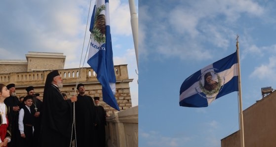 Με την παρουσία του Ιερού Κλήρου της Σύρου, του κ. Εισαγγελέως Εφετών Αιγαίου, της Προέδρου και των Μελών του ΔΣ του Συλλόγου Μικρασιατών Σύρου και της εντεταλμένης επί θεμάτων Παιδείας Δημοτικής Συμβούλου κας Ειρήνης Δράκου, εκπροσωπούσης τον απουσιάζοντα εκ Σύρου Μικρασιάτη Δήμαρχο Σύρου-Ερμούπολης κ. Νικόλαο Λειβαδάρα, και ενώ οι παριστάμενοι έψαλλαν, σε κλίμα συγκίνησης, τον Εθνικό Ύμνο, ο Σεβασμιώτατος κ. Δωρόθεος Β΄ ανήρτησε απόψε στον κεντρικό ιστό του Καθεδρικού Ναού του Αγίου Νικολάου Ερμουπόλεως τη Σημαία Μνήμης για την Επέτειο των 100 ετών από τη Μικρασιατική Καταστροφή, την οποία φιλοτέχνησε η Ιερά Μητρόπολη και η οποία θα κυματίζει καθ' όλη τη διάρκεια του επετειακού έτους 2022.